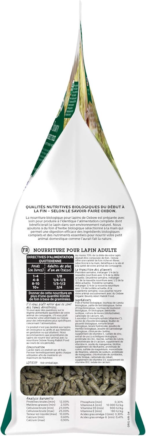 - ADULT RABBIT FOOD: Unleash the natural joy of your rabbit with Oxbow Organic Bounty Adult Rabbit Food; Indulge them with delicious pellets, each made with 100% hand-selected, certified organic meadow hay for rabbits; A feast they will truly enjoy