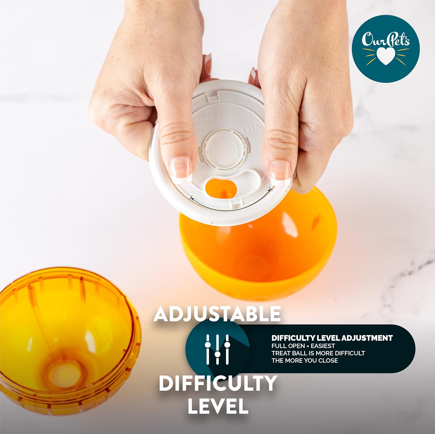 - CUSTOMIZABLE IQ TREAT BALL: Your furry friend gets smarter as they play with this interactive dog toy ball, learning how to roll the ball to get treats to fall out. Adjust the desired difficulty level using the ballβs adjustable interior disc.
