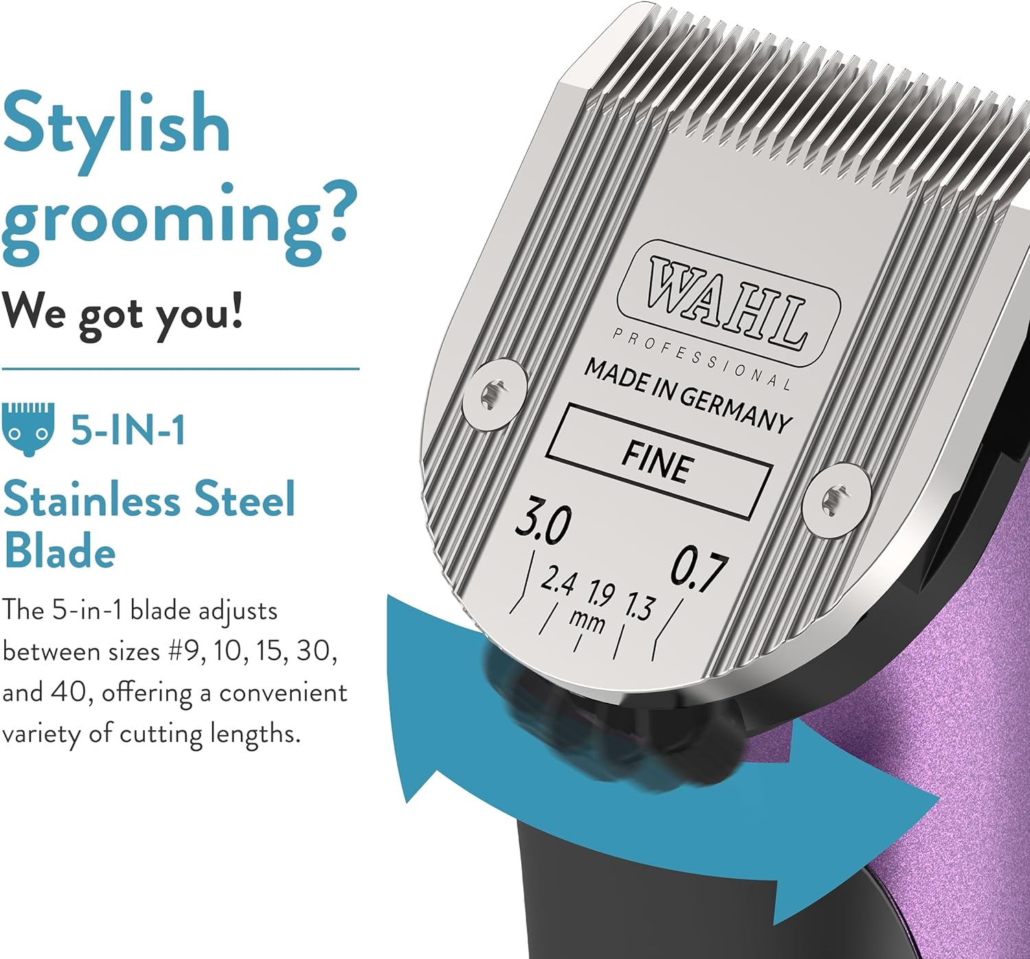 WAHL Professional Animal Bravura Lithium Ion Clipper - Pet, Dog, Cat, and Horse Corded/Cordless Clipper Kit, Purple (41870-0423)