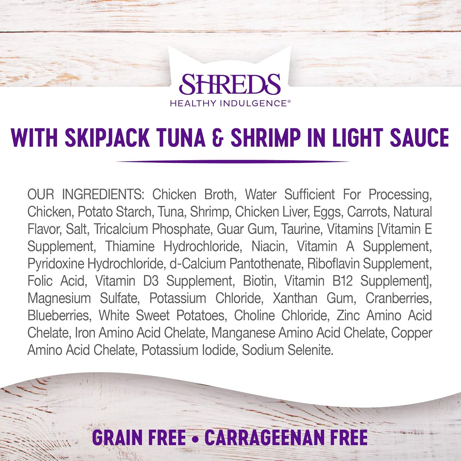 - EASY TO SERVE POUCH: Mess-free pouch makes mealtime easy. This variety features Tuna/Shrimp served with a light gravy to satisfy even the most refined palate.