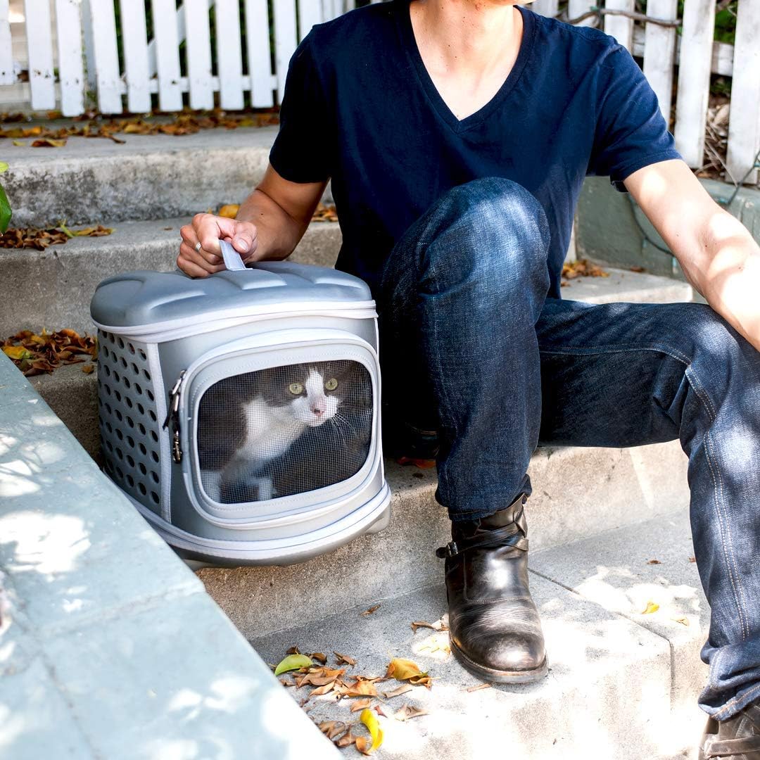 - PERFECT SIZE FOR A TRIP TO VET: A pet carrier that gives you the best features of both hard and soft carriers! 17" long by 13" high by 14" wide, it's suitable for cats, small dogs, and other pets.