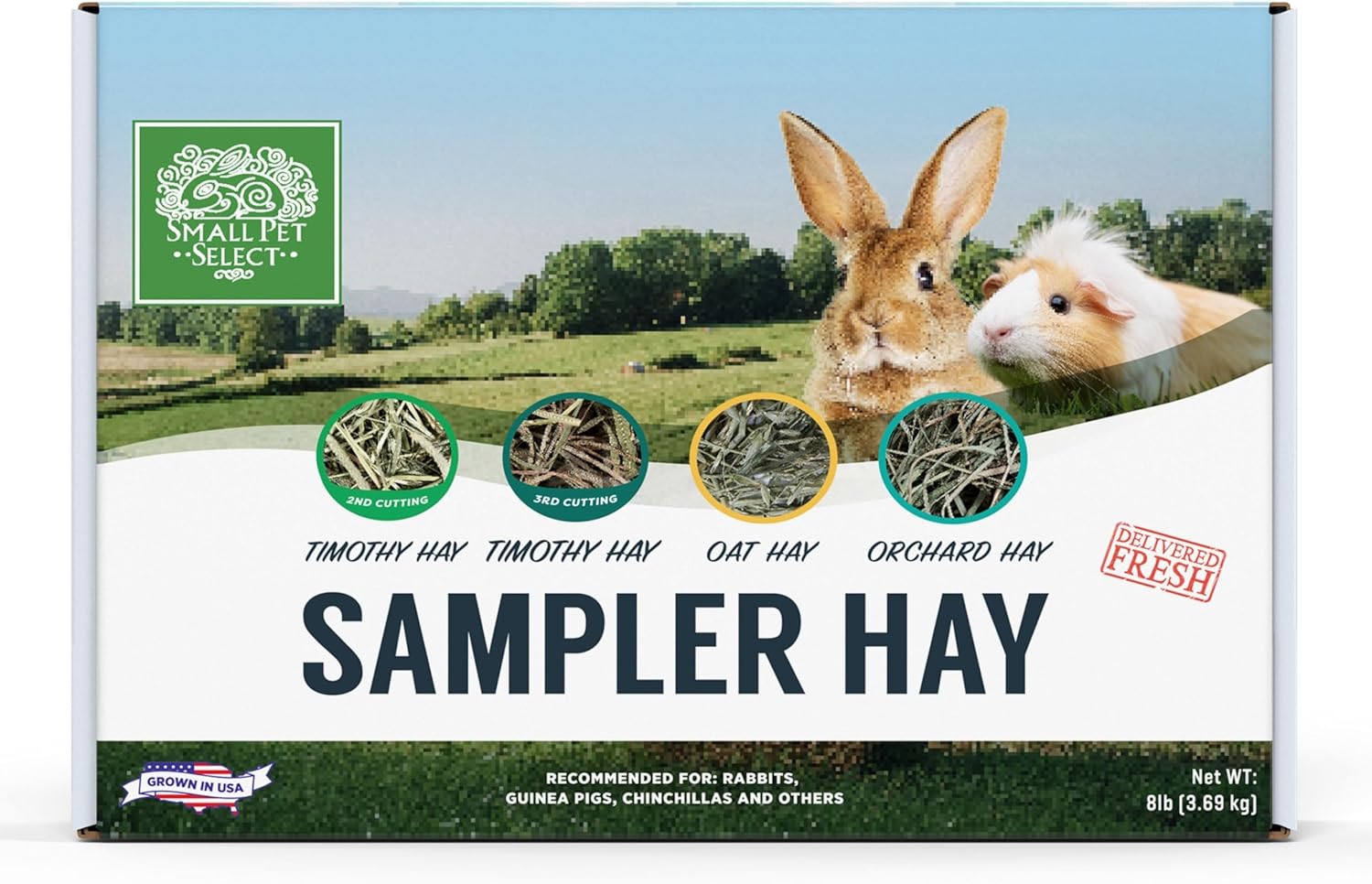 Small Pet Select-Sampler Box, 2ND Cutting, 3RD Cutting Timothy Hay, Oat Hay, & Orchard Hay