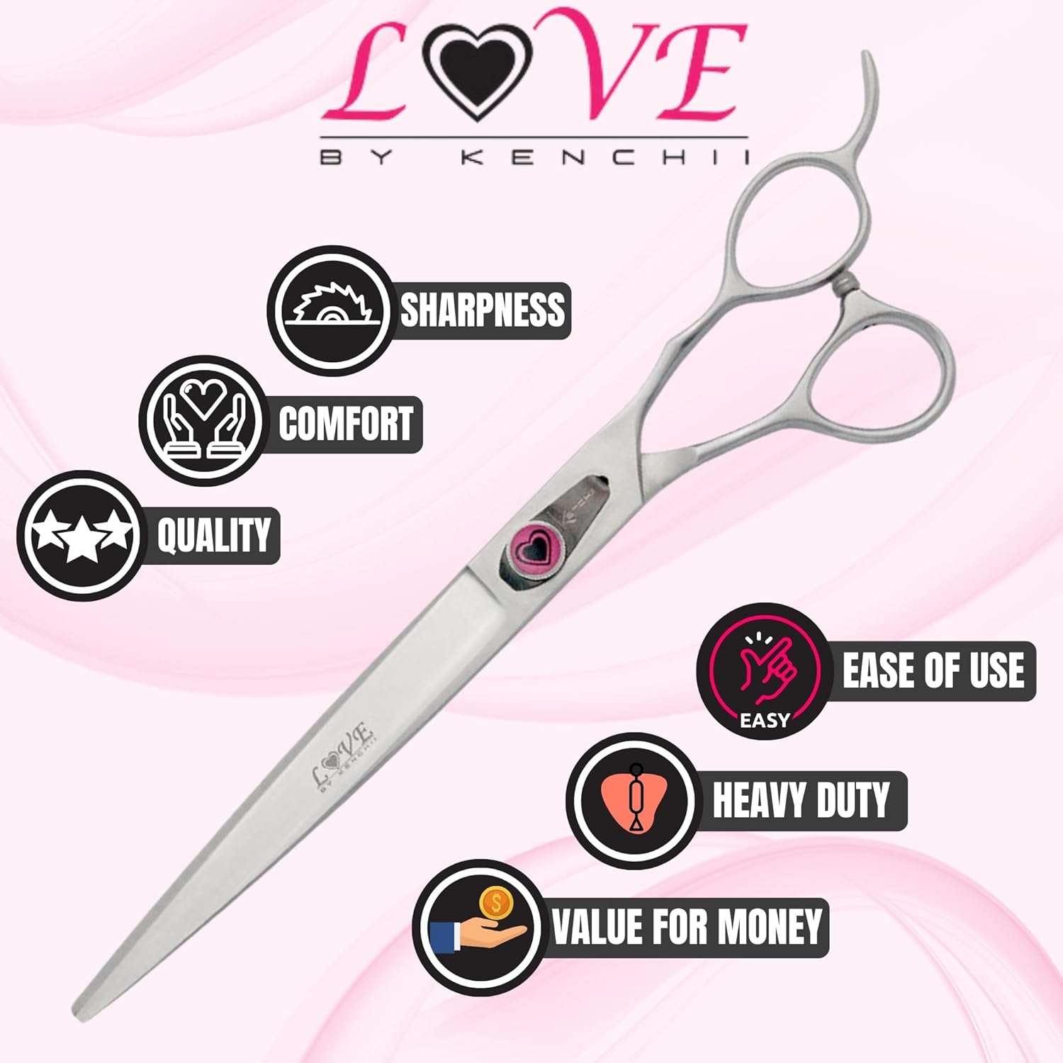 Kenchii Love Dog Grooming Scissors, 8 Inch Straight Shears, Dog Scissors for Grooming, Professional Pet Grooming Scissors, Heavy Duty, Durable and Sharp
