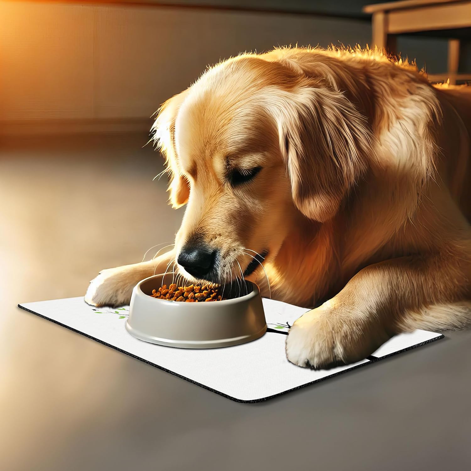 - Ideal Size Mat - to place under pet bowls, measuring 18 inches wide by 12 inches long and 5mm thick, this mat is perfectly sized to fit under pet food and water bowls, helping keep your floors clean from spills and messes.