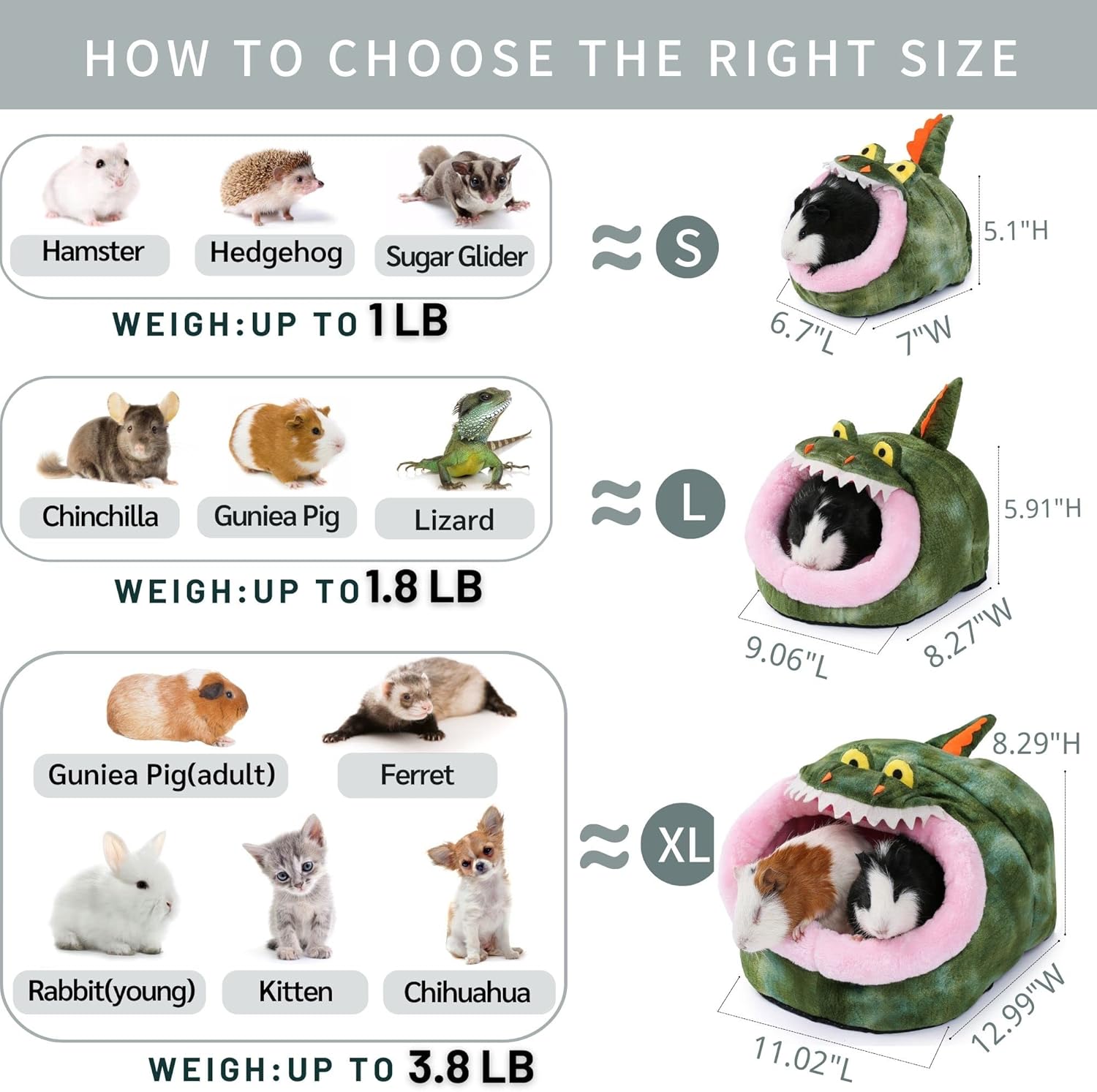 - 【3 SIZE OPTIONS】Small is fit for a baby guinea pig (Weigh no more than 1 pound); Large is fit for a young guinea pig (Weigh no more than 1.8 pounds); X-Large is fit for a ferret or two adults guinea pig to share space ( The total weight does not exceed 3.8 pounds). We recommend X-Large bed accessories for cage, pets grow fast and they like to roll and play in spacious spaces
