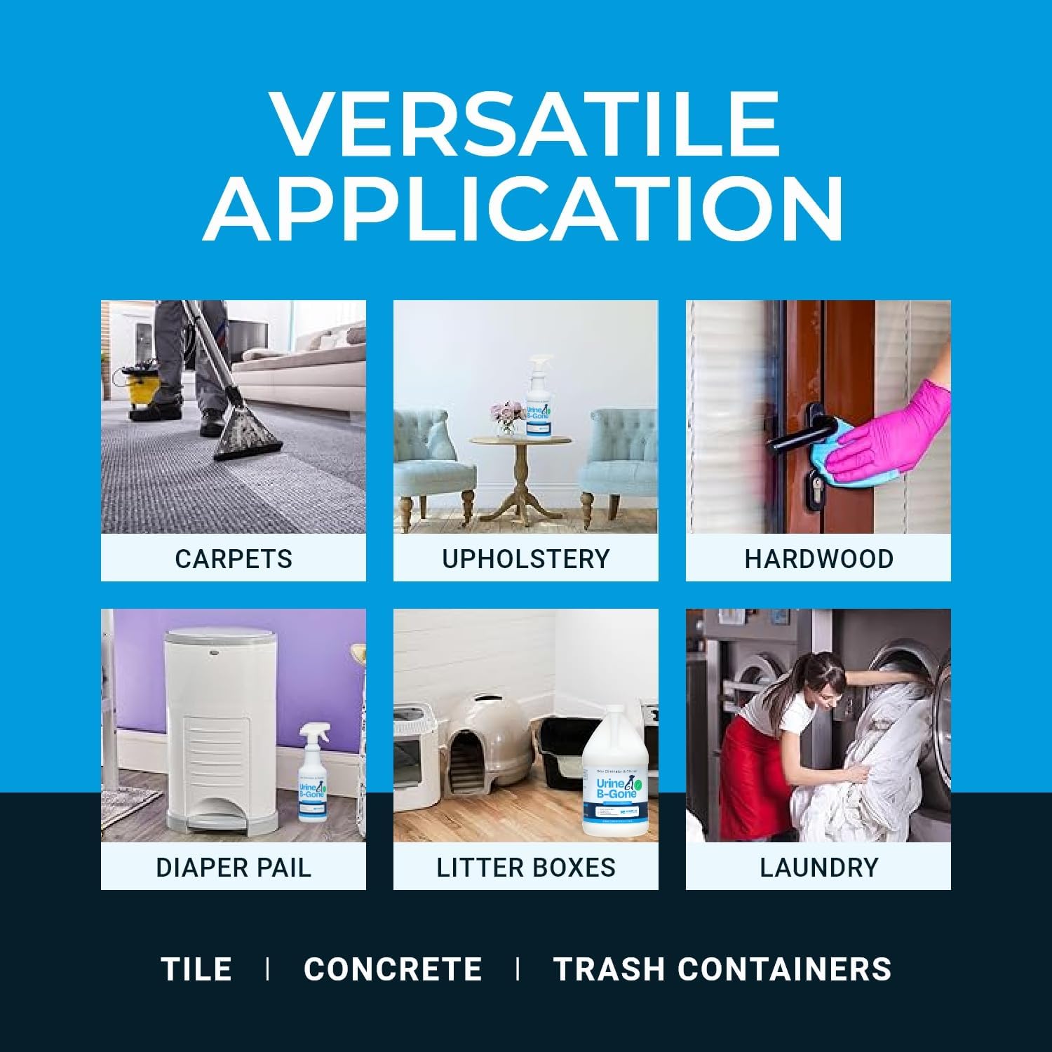 - Versatile Cleaning Solution: Beyond pet stains, Urine B-Gone is ideal for a variety of applications; Use it in your laundry to pre-spray soiled areas or even in drains, urinals, and toilets; This all-in-one cleaner & odor remover makes tackling tough stains and odors simple and efficient