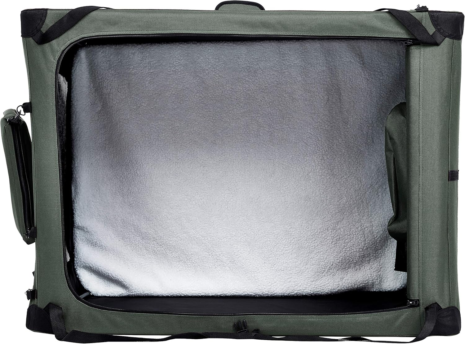- Multiple screened panels for ventilation and visibility; machine-washable soft fleece pad for comfort; handy pockets on top and sides for storing treats, toys, and more