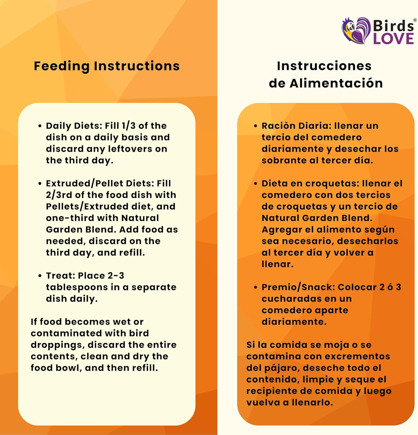 - No added preservatives nor sweeteners: natural sweet fruits to maintain healthy skin, muscles, and feathers