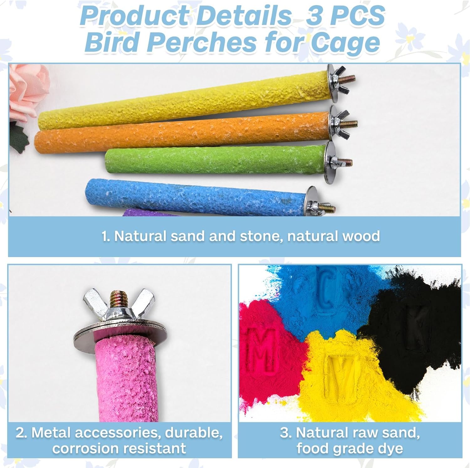 - Multiple Colors: Birds perch is made of natural quartz sands and purely natural wood inside with food grade color, and please note inside all is pure natural wood
