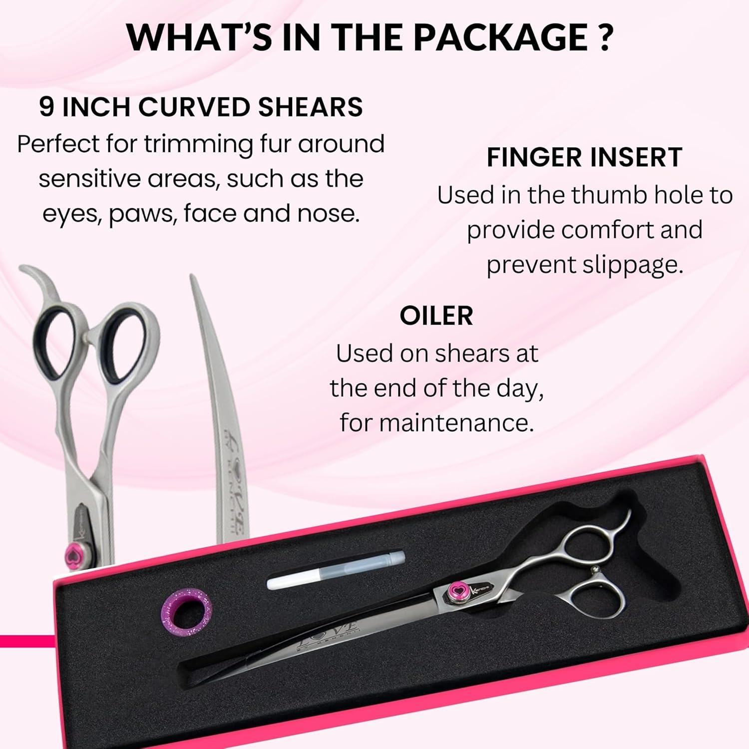Kenchii Love Left Handed Dog Grooming Scissors, 9 Inch Curved Shears, Dog Scissors for Grooming, Professional Pet Grooming Scissors, Ergonomic & Comfortable