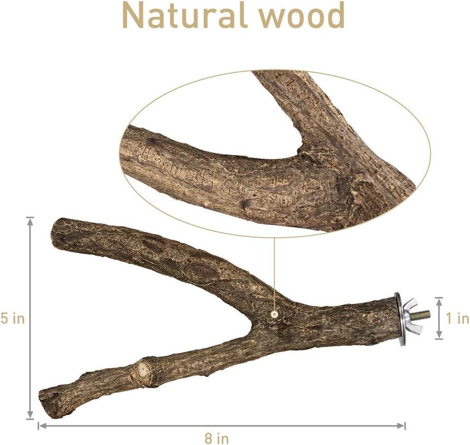 - Recommend Small Animals: The branch perch length is 8 inch, width is 5 inch; The wood perch length is 7.9 inch, thickness is 0.7 inch, suitable for budgies, parakeets, conure love bird and other small bird