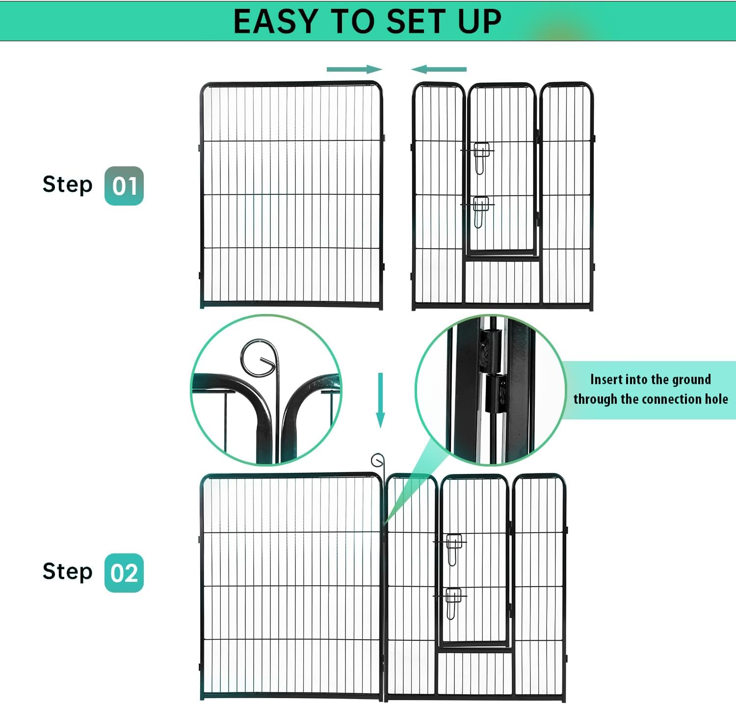 - ✔【EASY TO SETUP】This dog playpen is a must have for any dog lovers. The design of our pet playpen constructed with simple assembly instructions will set up in minutes. Our puppy playpen dis-assembles quickly, which is very important as you don't want to be wasting tons of time.