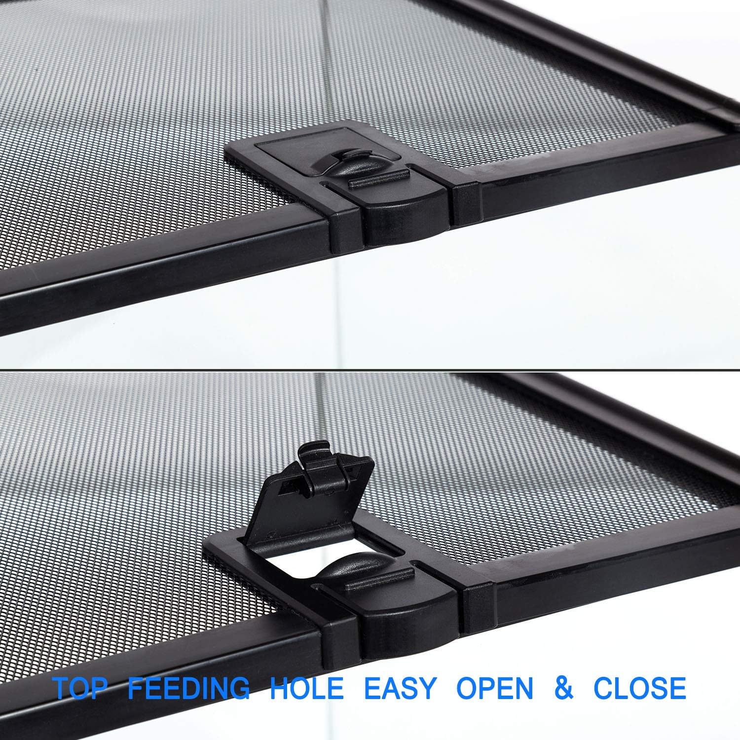 - ăCompact Design & Top FeedingăCompact and flat-packed design reptile tank with top opening to prevent escape and easy feeding. With a transparent PVC tray in the bottom for holding water and substrate