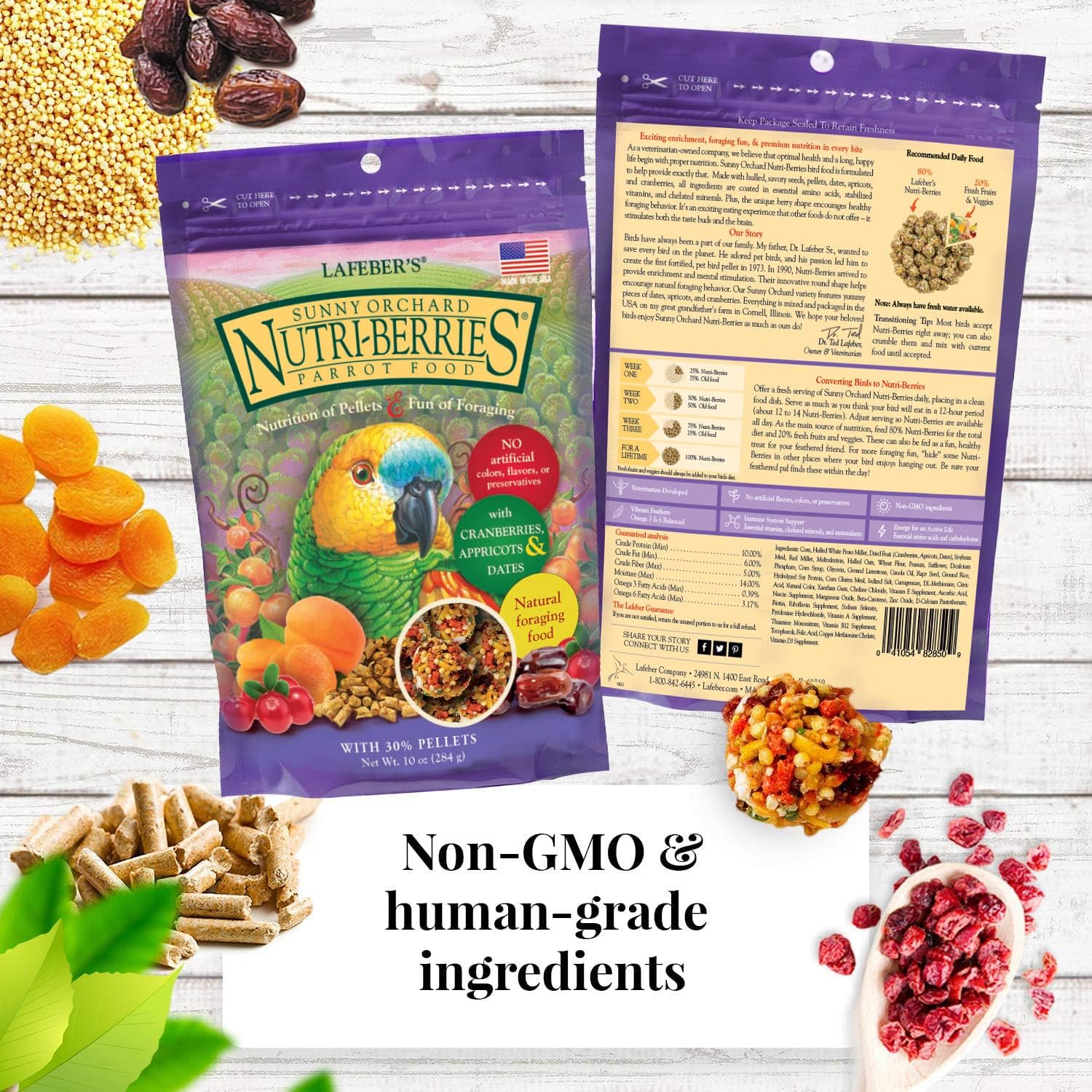 LAFEBER'S Nutri-Berries Pet Bird Food Variety Sampler Bundles, Made with Non-GMO and Human-Grade Ingredients, for Parrots, 10 oz. Each (4 Pk Bundle) with Free Avi-Cake Sample