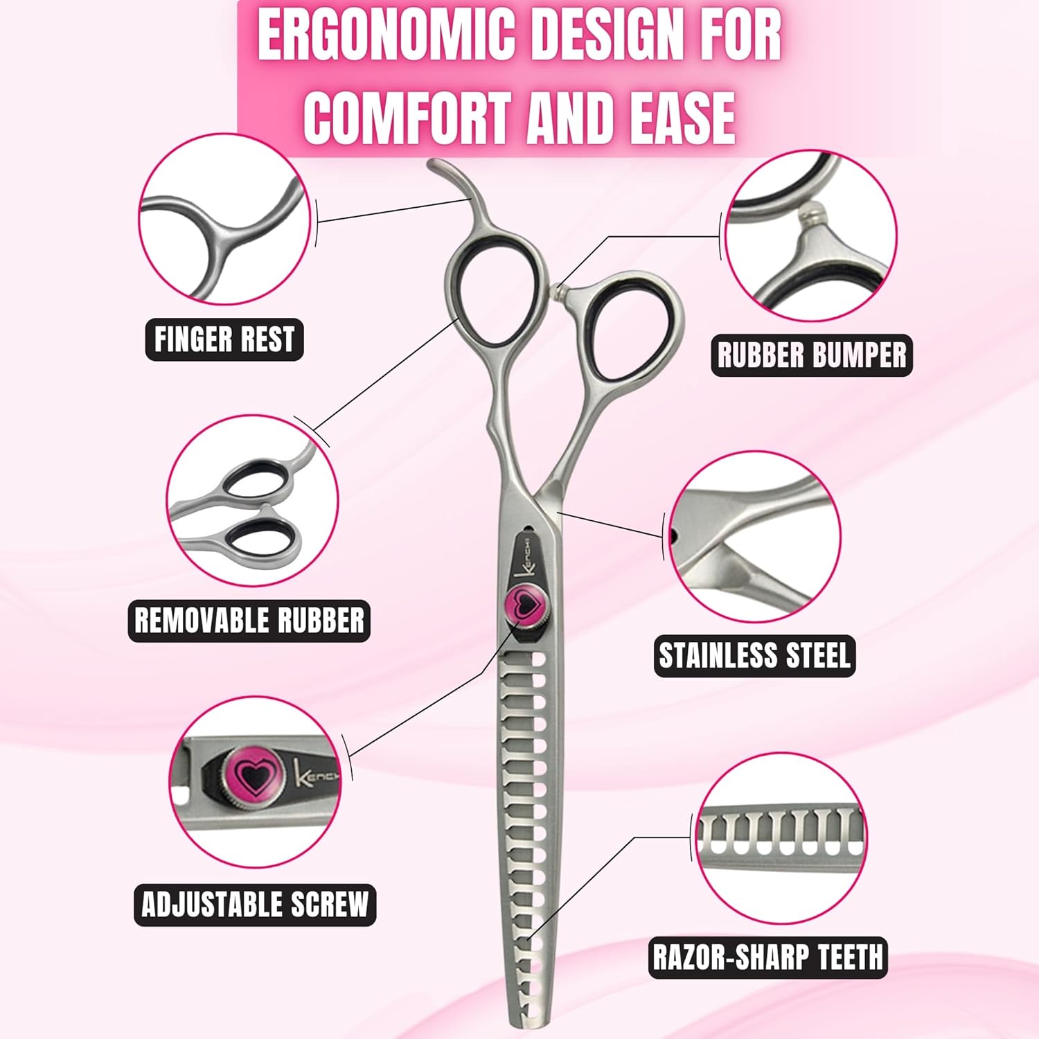 Kenchii Love Dog Grooming Scissors, 17 Tooth Thinning Shears, Dog Scissors for Grooming, Professional Pet Grooming Scissors, Heavy Duty, Durable and Sharp