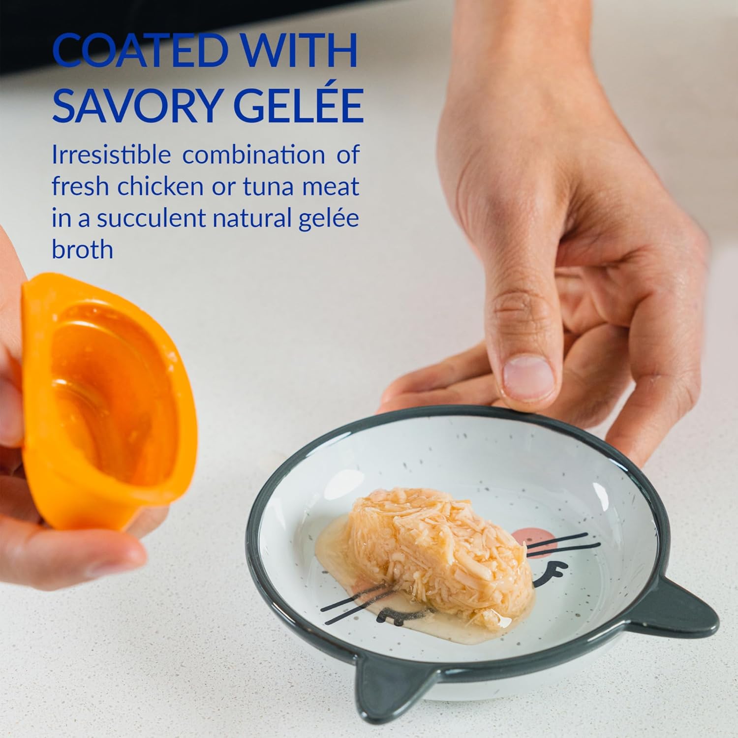 - TWICE THE TOPPERS: Twins are two single serve portions of shredded chicken suspended in a savory chicken broth gelรฉe. Simply break apart, pull back the lid and use as a topper on wet or dry cat food or as a side dish/complement to their meal