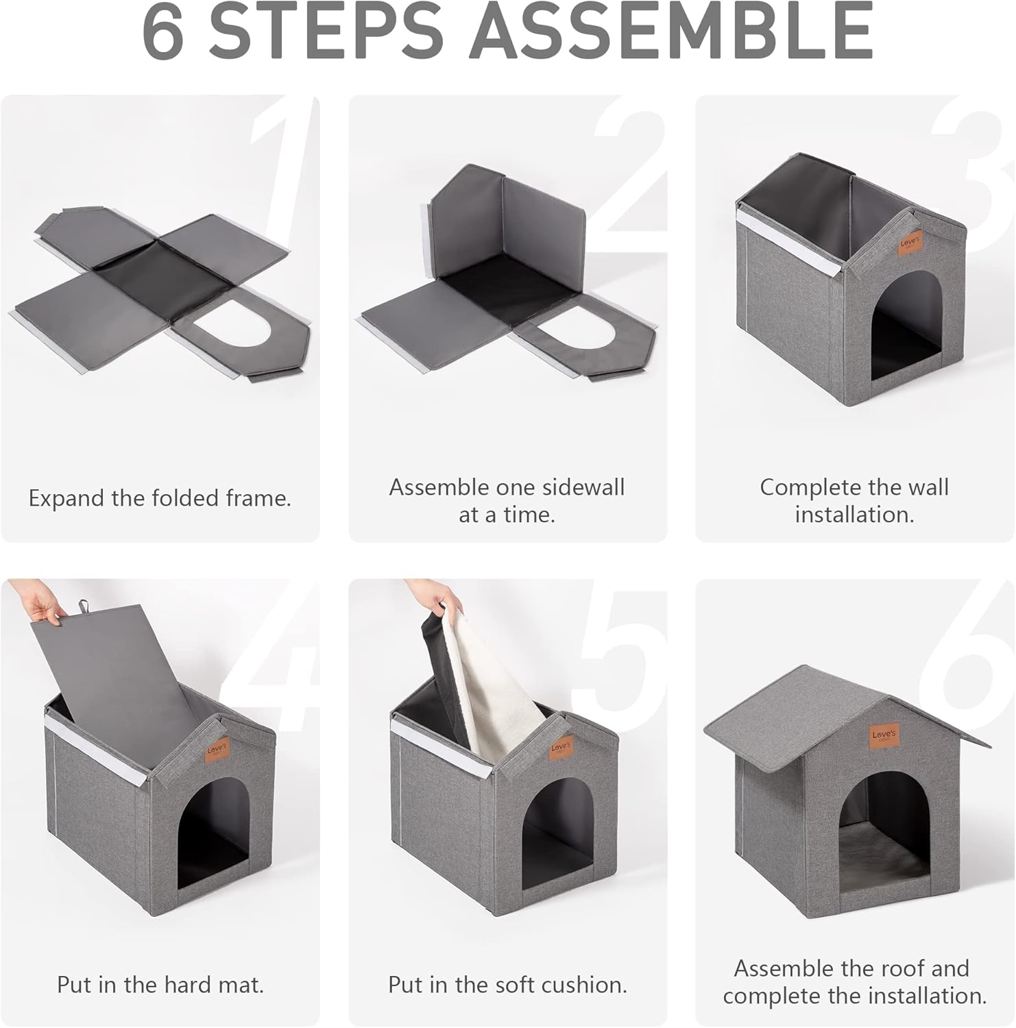 - Easy to Assemble & No Tool Needed: This collapsible outdoor cat house can be easily disassembled and installed in a matter of seconds. Only by the velcro to connect, no other tools needed. No matter where you set up your outdoor cat house (in the garden, in the barn, in the forecourt or in the house), it won't make any difference to your cat.
