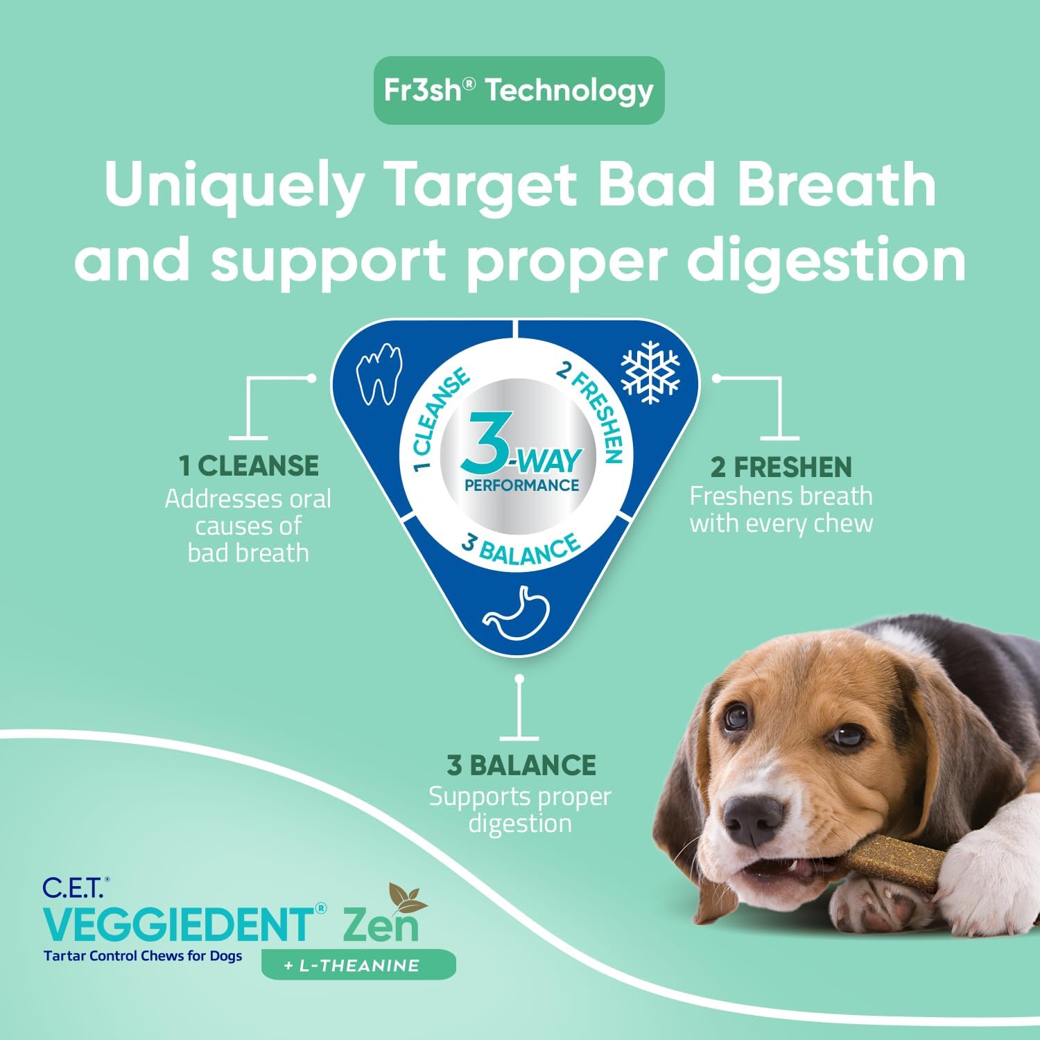Virbac C.E.T. VEGGIEDENT Zen Tartar Control Chews for Dogs - Small