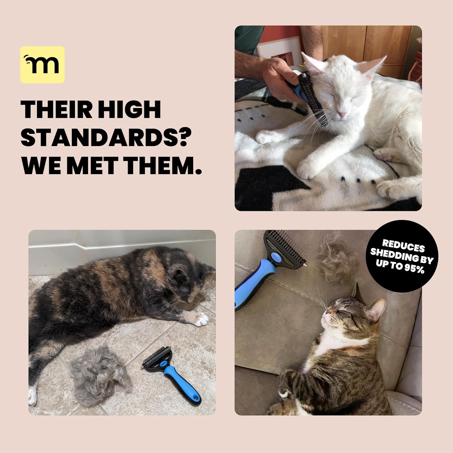 - Easy Coat Control: The MalsiPree Pet Grooming Brush with its dual-sided deshedding rake and dematting comb reduces shedding by up to 95%, keeping your cats's coat sleek and healthy. This cat shedding brush and cat dematting tool is a must-have for cats with dense double-coats