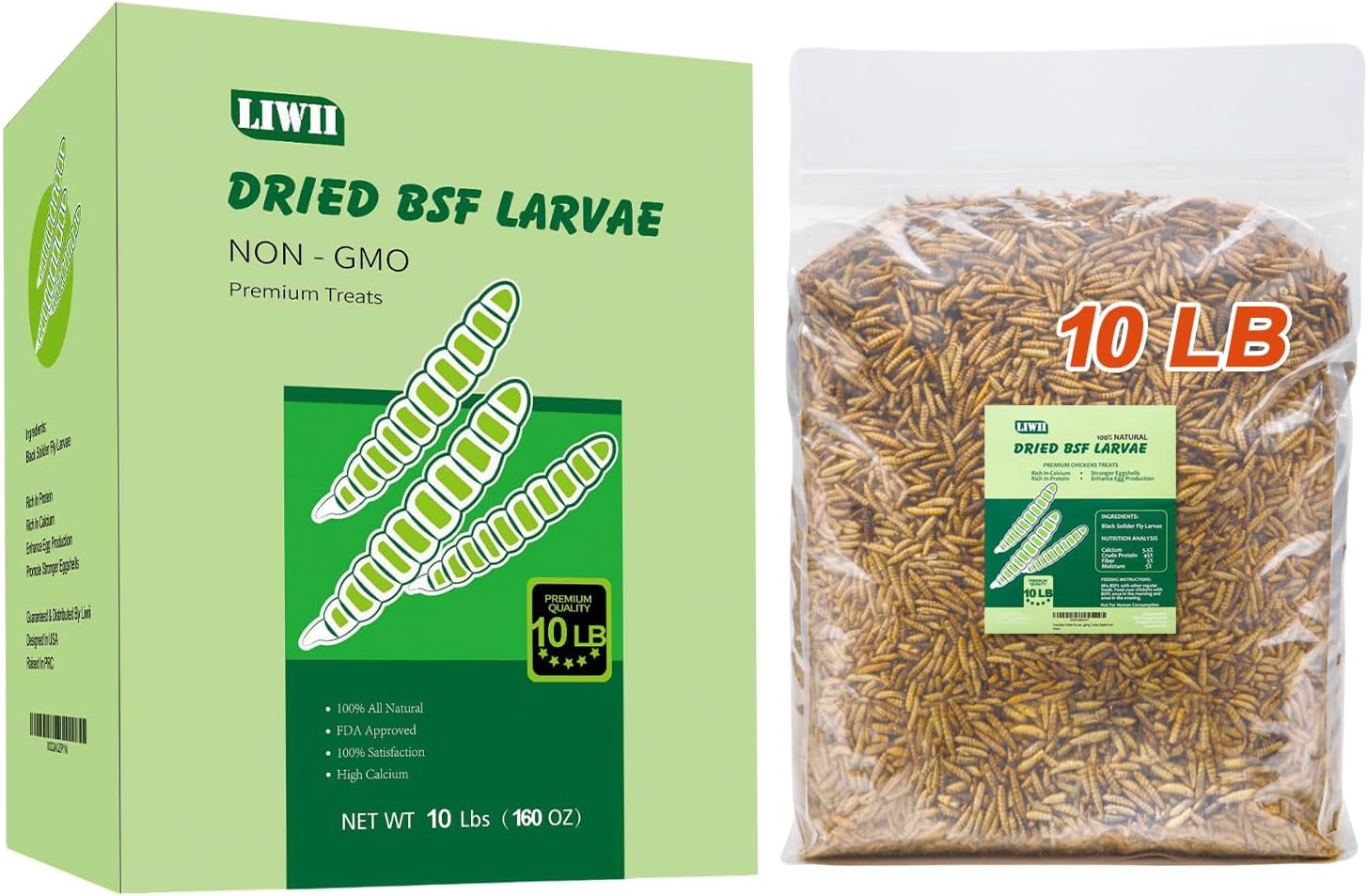 10LB Dried Black Soldier Fly Larvae, 86X Calcium Than Dried Mealworms, High Protein Non-GMO Organic Chicken Feed