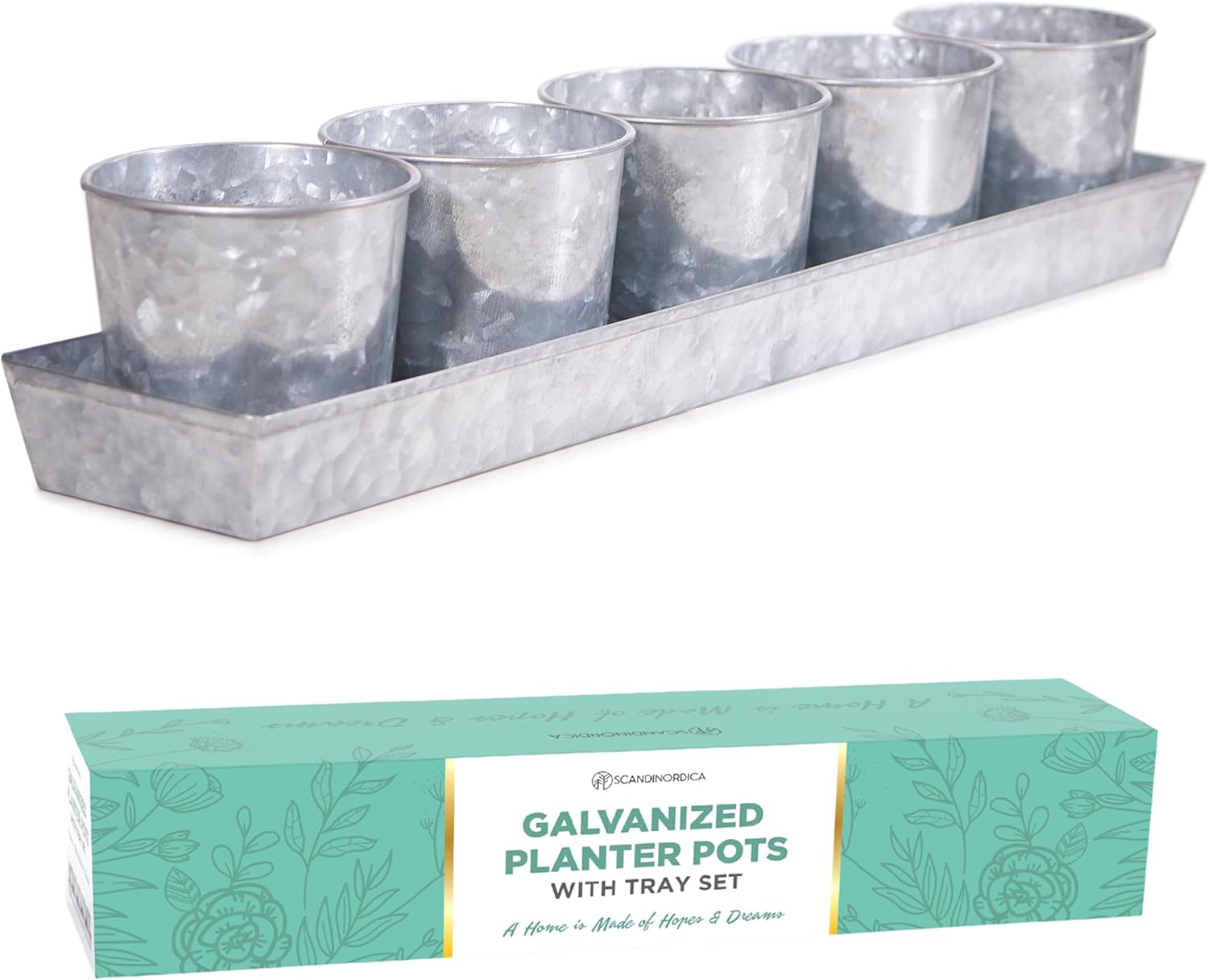 - STYLISH FARMHOUSE DECOR – This stylish and unique set of 5 galvanized garden pots combines practical design and superior functionality. Herb planters for indoor plants is a convenient addition to any chef's or home cook's kitchen