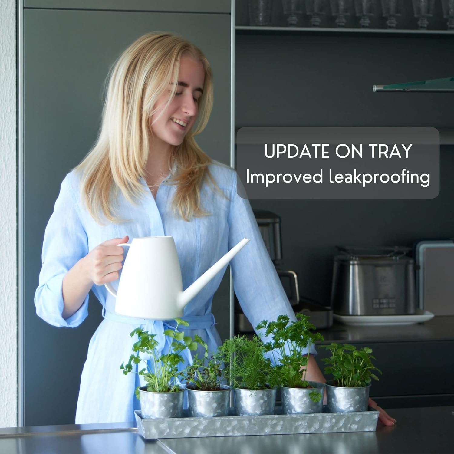 - STURDY AND STRONG - Made from the high quality galvanized steel. The rectangular tray keeps the herbs pots attractively corralled and easily transportable. Window sill herb garden tray dimensions: 19.5in L x 1.6in H x 3.5in W — Pots: 3.5” high, 3.8” top width, 3.1” bottom width