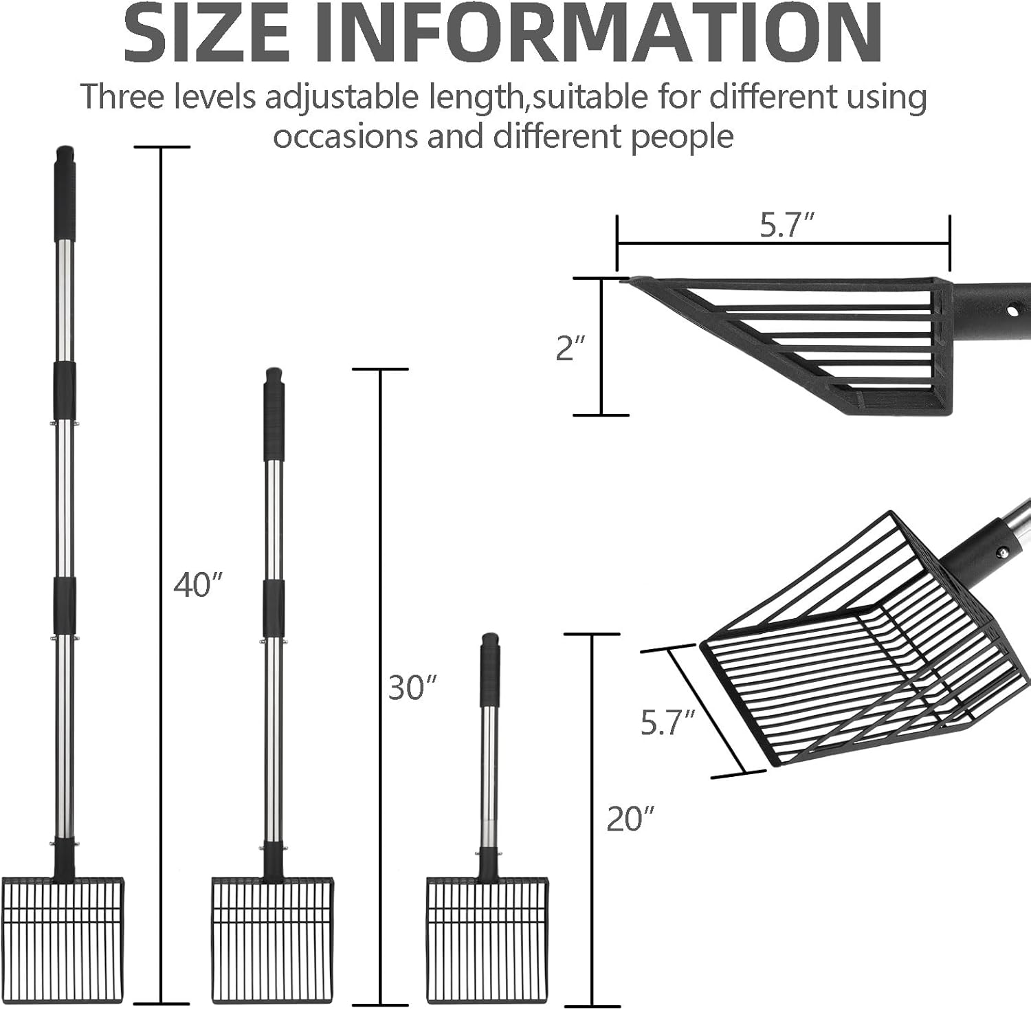 - [3 Levels Length Adjustable]: The handle length can be adjusted from 19.9 inches to 39.8 inches. It can be assembled and disassembled with the press of a button, and the holding handle works very well. Three kinds of lengths can be adjusted to meet the needs of people of different heights. From then on, you donβt need to bend down to serve your cat