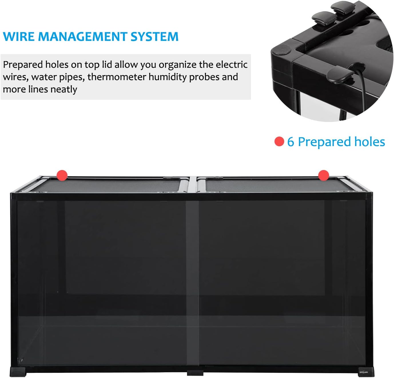 - ăTempered Glass & Aluminum FrameăHigh quality tempered glass bottom base and aluminum alloy frame ensure this reptile terrarium is sturdy and safe. Raised bottom 0.5In in order to fit a substrate heater underneath, and waterproof bottom can be used as desert terrarium or rainforest tank.
