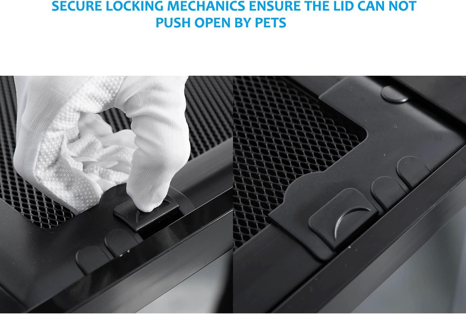 - ăAnti EscapeăSecurity buckle on the lid ensure the tank closed tightly, prevent your reptile amphibian chameleon pets from escaping. And the security lock avoid the doors open accidently by your kids and keep your kids safe.