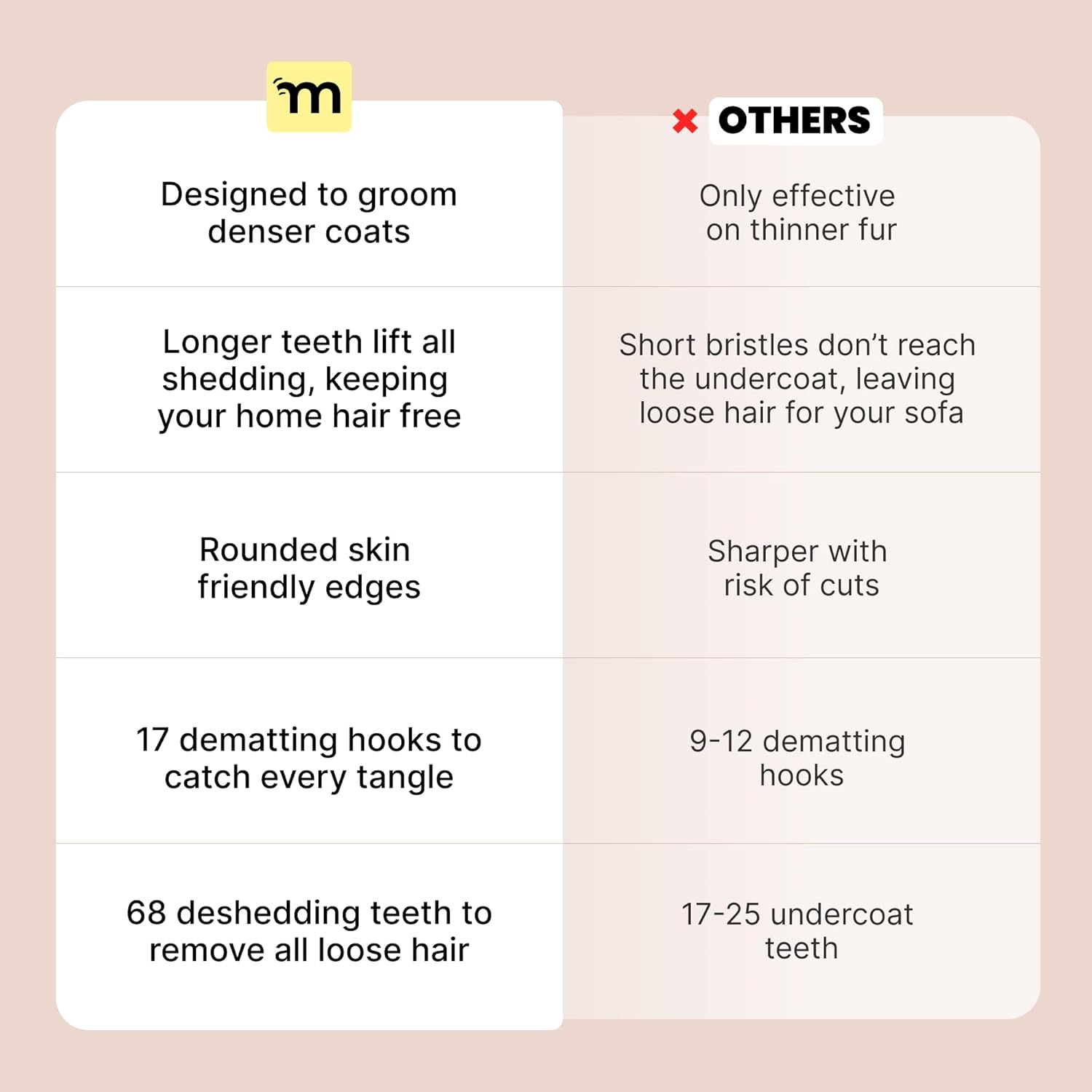 - Double-Coat Tamer: Tackle your dog's undercoat with ease using the undercoat rake dog brush. It's a must-have for pet parents with German Shepherds or Golden Retrievers who struggle with dog shedding