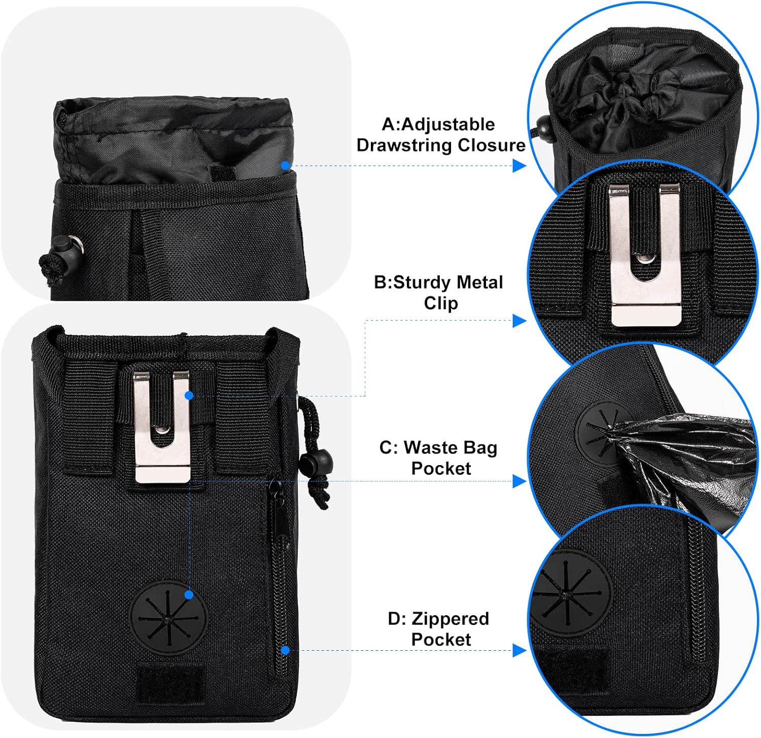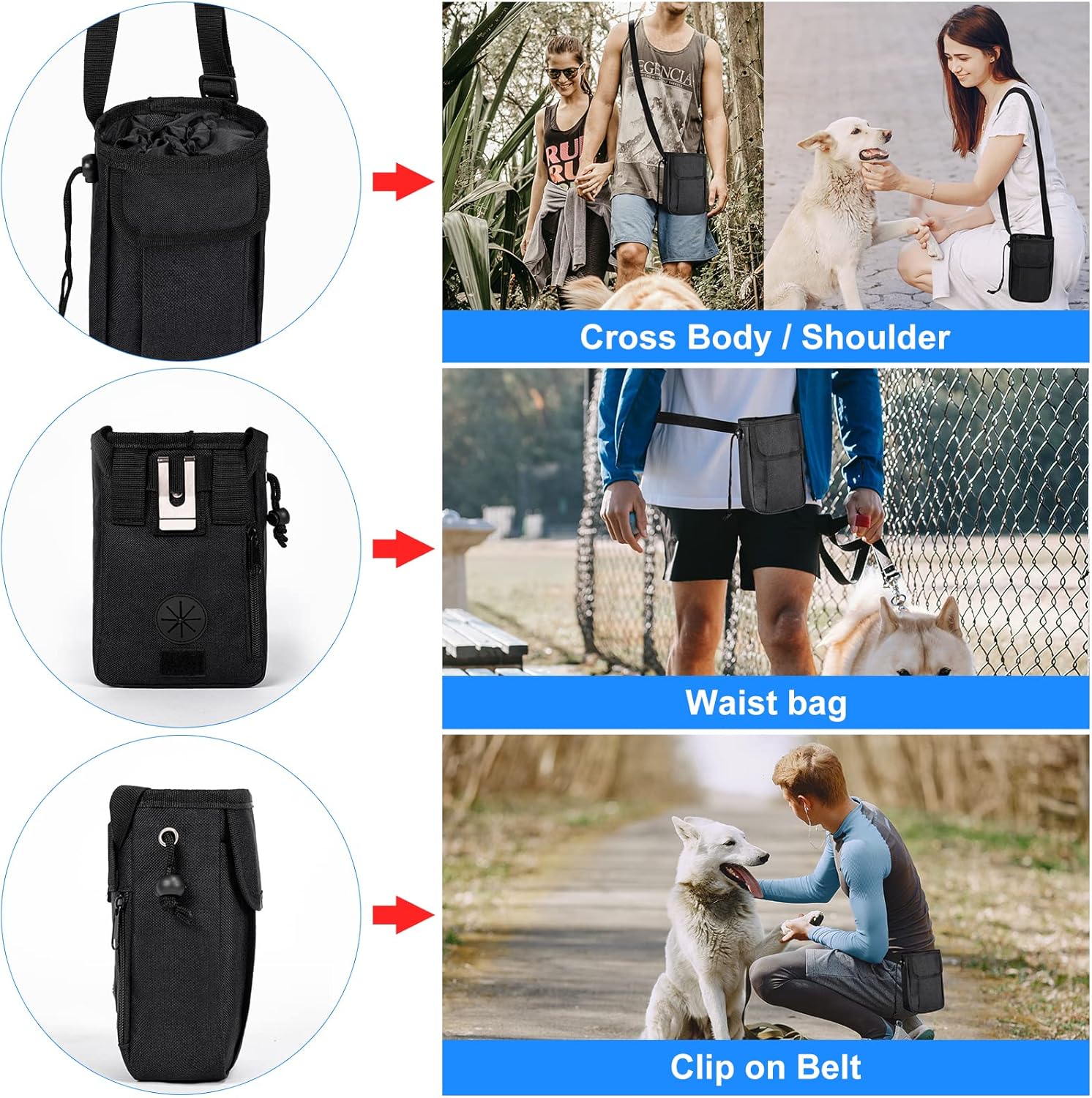 - Dog Travel Accessories: two detachable pet training bags make the pet organizer more functional.The on-the-go dog treat pouch can carry your dog's favorite treat and toys.With big opening and drawstring closure allows quick access to pouch with one hand.You can also securely store your personal belongings, such as phone, keys, or wallet in the pouch.Perfect choice for dog training at the park.