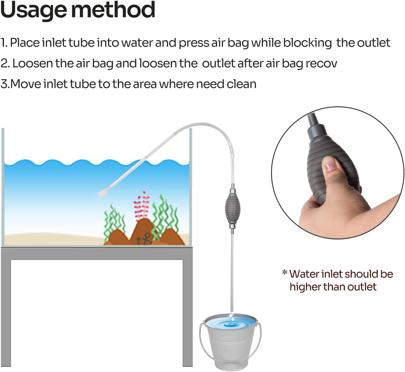 - 【2 IN 1 Multifunctional Siphon Gravel Cleaner Set】: It can work as water changer or tank cleaner as it has grid inlet head and oblate head, you can install the head as you need. Whether you have a small or extra-large tank, this flexible terrarium cleaning kit works well with all types of terrarium, the tube is long enough(79inch) and flexible, convenient to use.