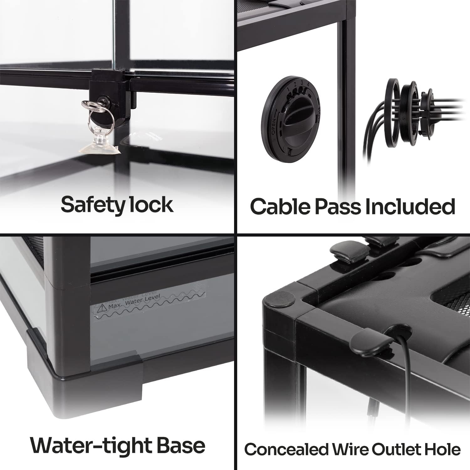 - 【Front Opening Door】: The front door can open separately and it's easy for you to feed, clean or add decoration. And the terrariums feature anti-escaping safety lock to prevent escape.