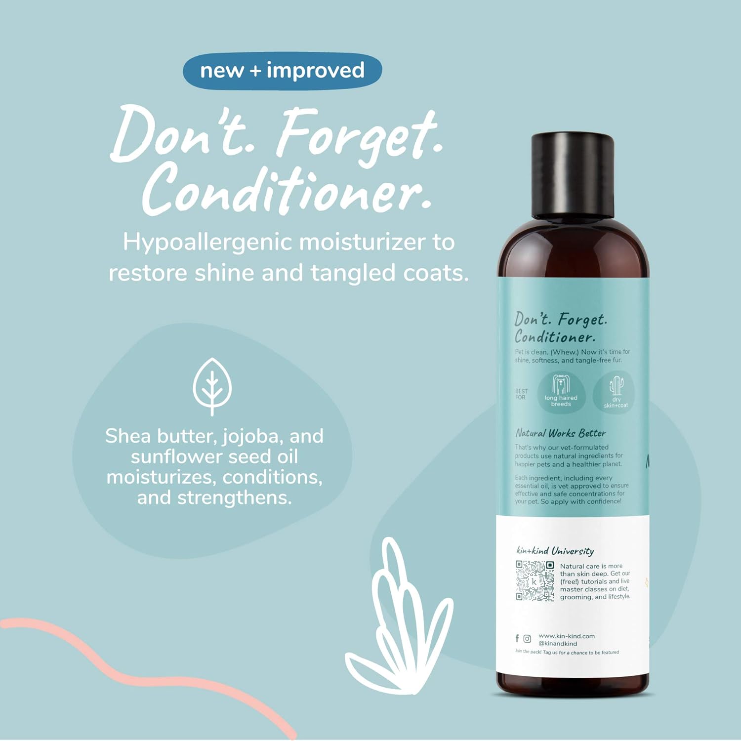 kin+kind Natural Cat & Dog Shampoo and Conditioner Set - Gentle Pet Supplies for Dogs and Cats - Shea Moisture Shampoo and Conditioner with Activated Charcoal & Moisturizing Shea Butter - Made in USA