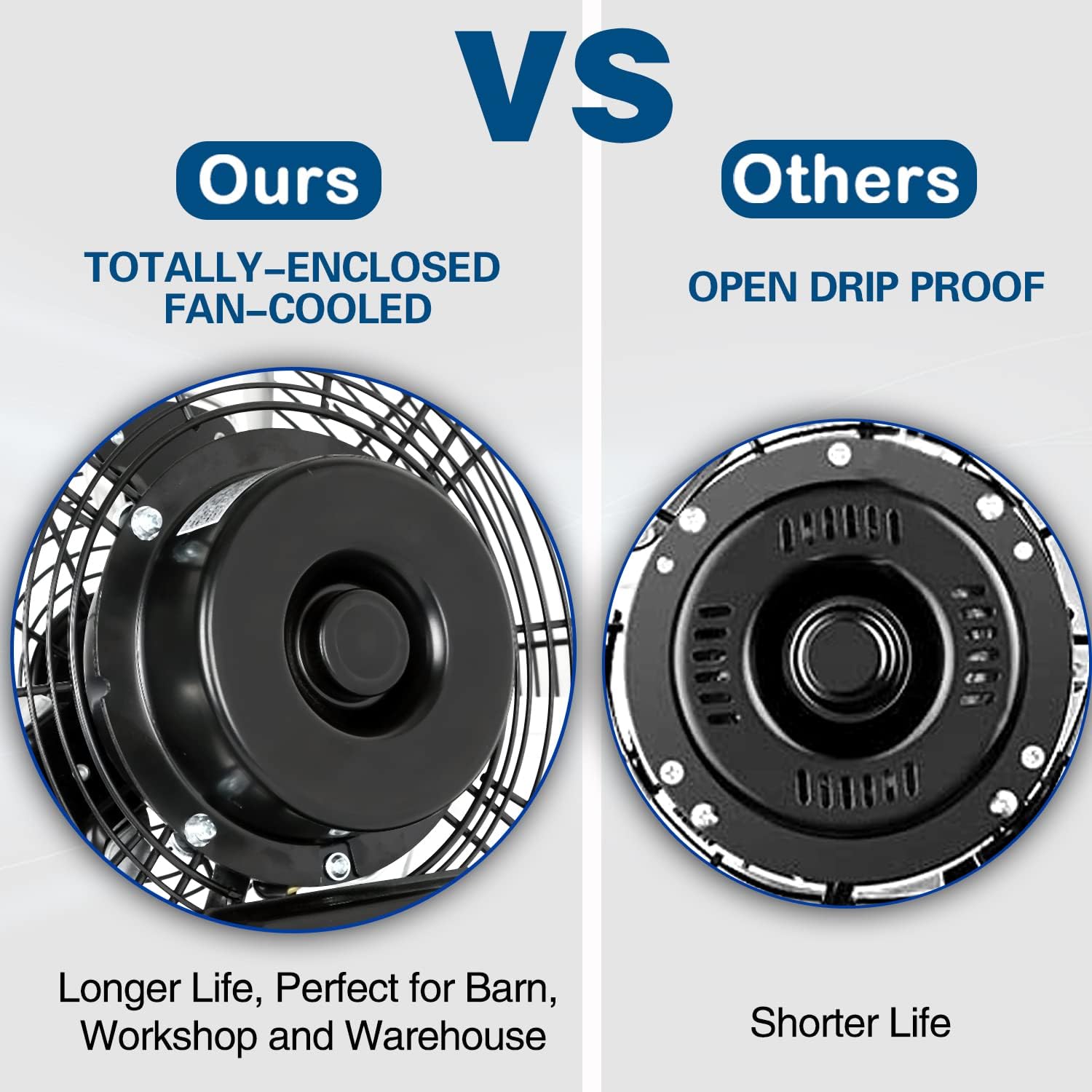 - ăDurable and Sturdyă: Featuring a fully enclosed ball-bearing motor and powder-coated steel construction, protects the motor from workshop debris and all other dust. With aluminum fan blades; OSHA compliant grilles; 6 ft. grounded three-prong power cord; our heavy duty commercial wall fan is a great unit for workshops, basements, and garages. Not graded for outdoor use.