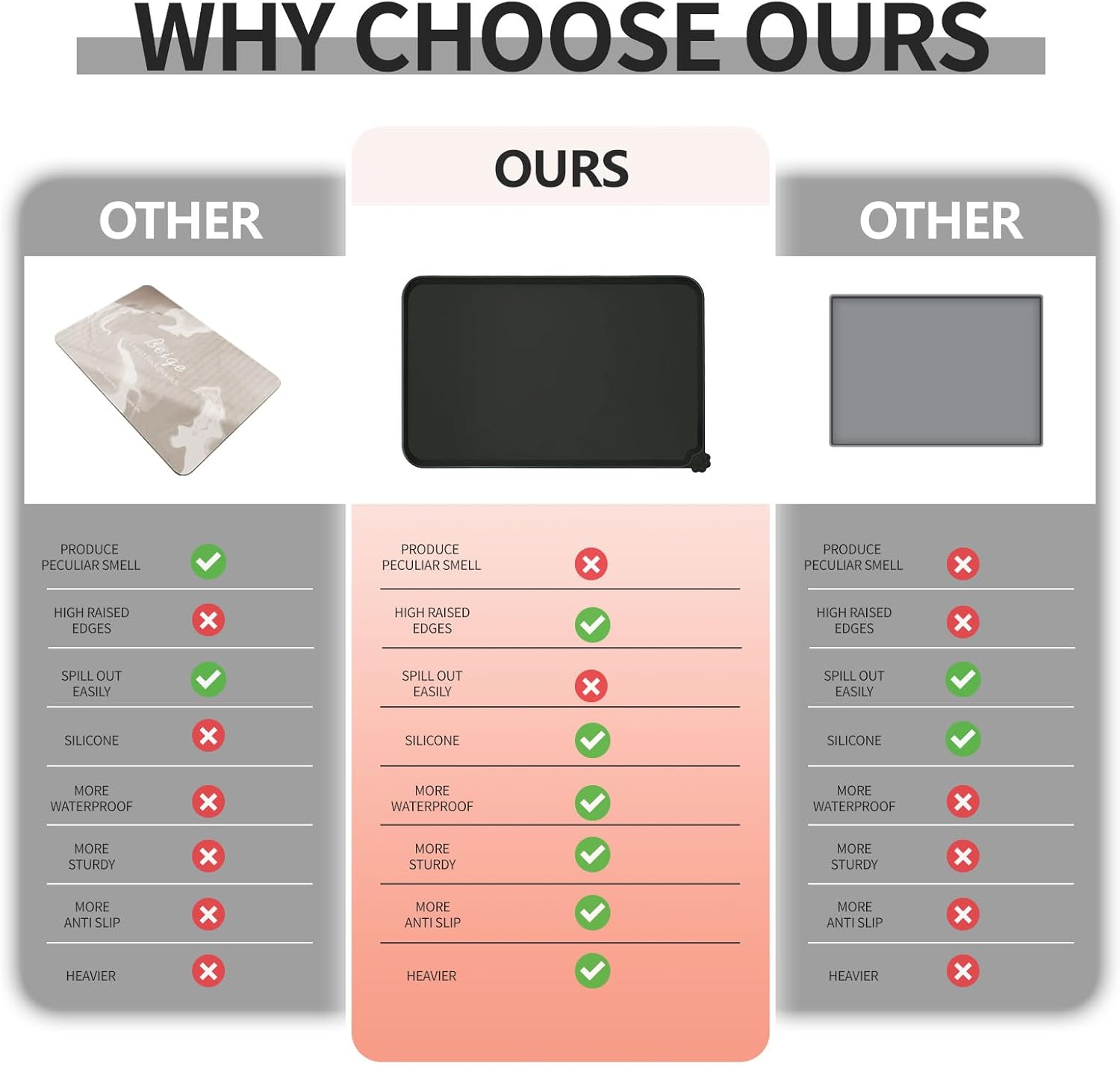 - Anti-slip design: our non-slip pet feeding mat ensures stability for your pet's bowl, preventing any water stains or spills on the floor. Enjoy peace of mind when feeding your pet, knowing that their food stays in place