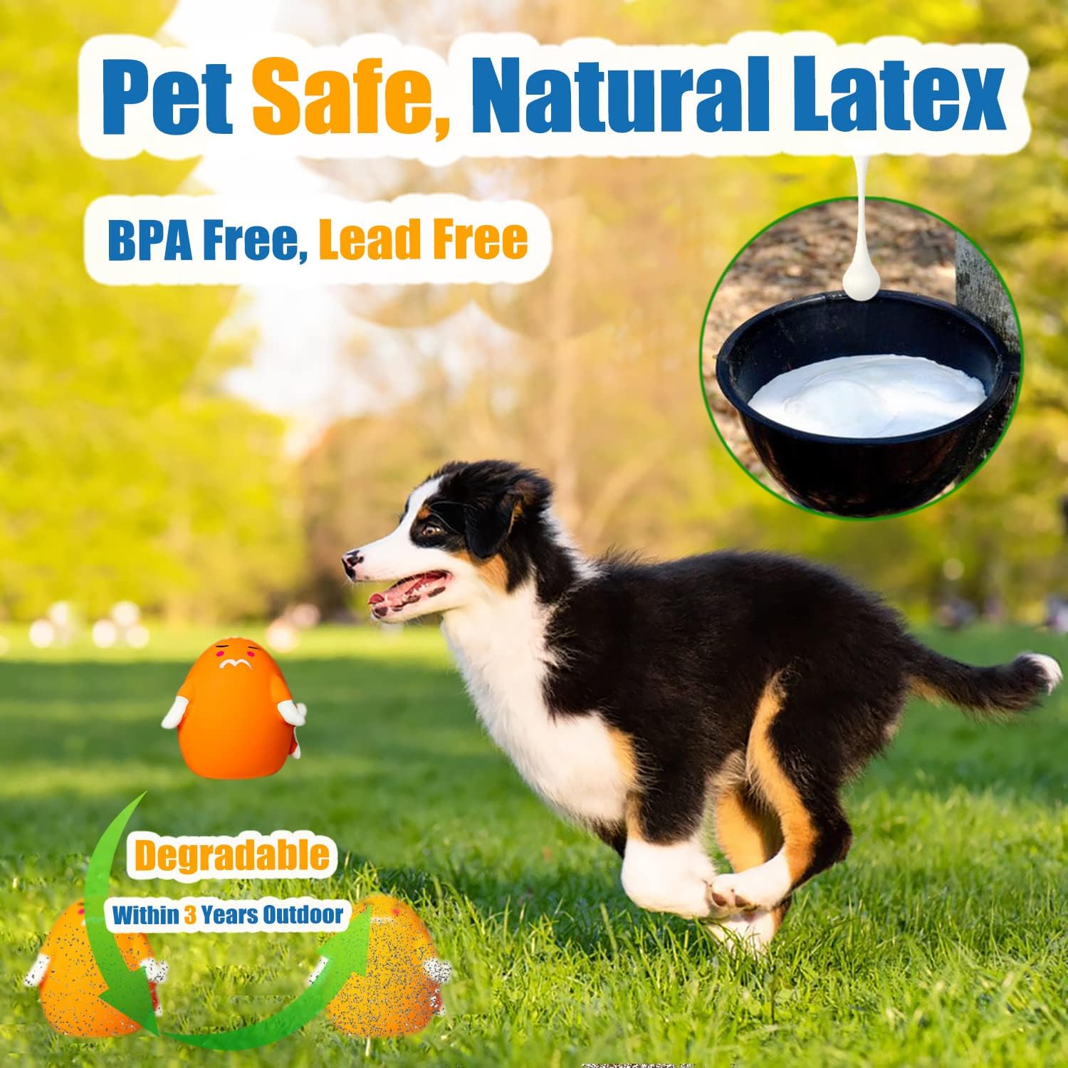 - [Safe, Natural Rubber Latex] Small squeaky Dog toys are made of natural rubber latex, non-toxic, BPA-free, and Lead-Free. The dog Squeaky balls for dogs comply with the same safety standard as childrenβs toys.
