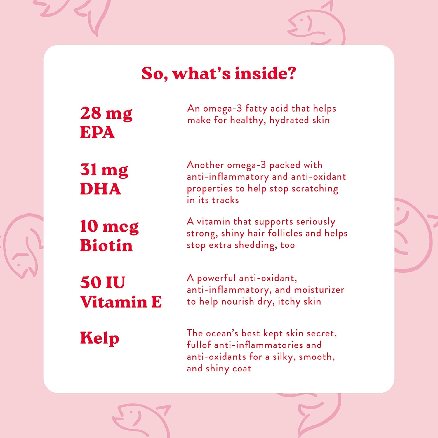• Simple, Functional, Fun: With Wild Alaskan Salmon Oil, Kelp, and Biotin all packed into our trustworthy "B" shaped soft chews. Ohand they taste good, too!