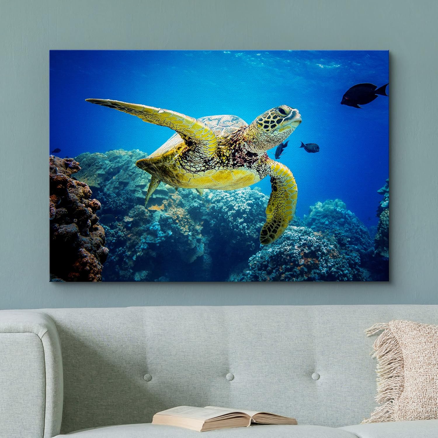 wall26 Canvas Print Wall Art Vibrant Ocean Underwater Swimming Turtle Nature Animals Photography Realism Rustic Scenic Landscape Wilderness Earth Colorful for Living Room, Bedroom, Office - 16"x24"