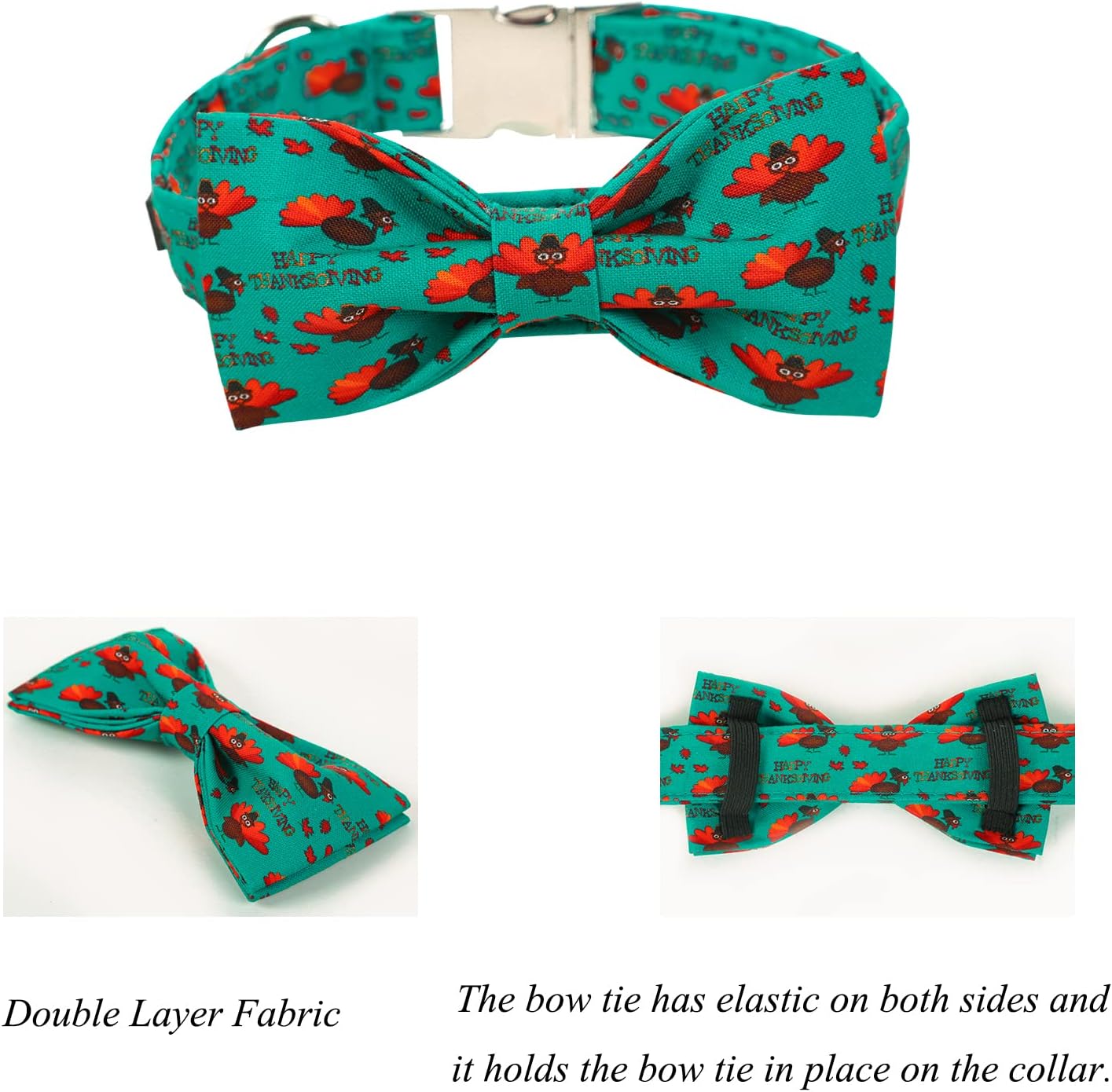 Lionet Paws Thanksgiving Day Dog Collar with Bowtie, Dog Bowtie Collar with Metal Buckle for Dogs and Cats, Adjustable Comfortable Turkey Dog Collar Girl Boy Gift, S, Neck 10-16 in