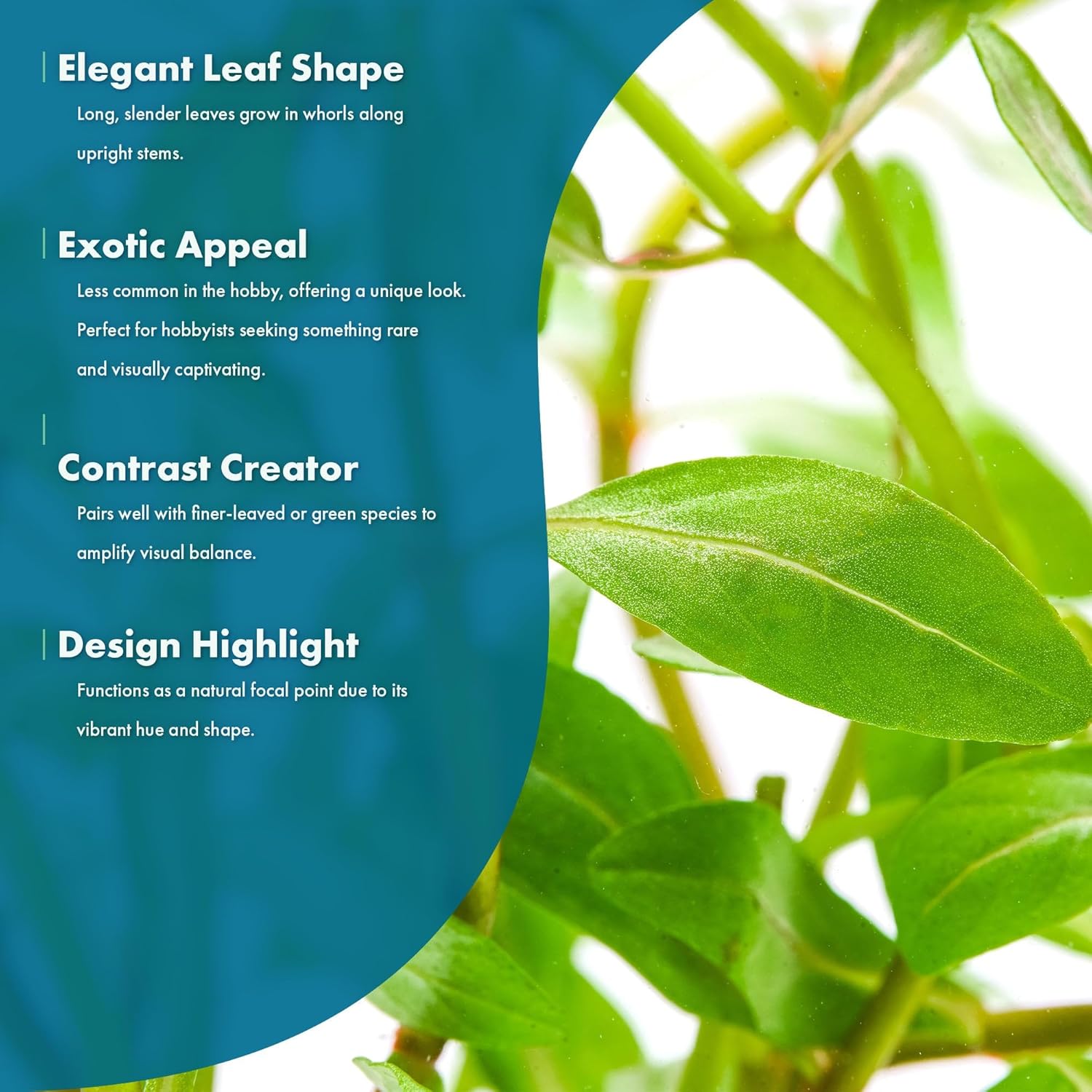 - Care Requirements – Thrives in High Light; 8–10 hrs/day – CO₂ recommended for vibrant growth, and propagation is via stem cuttings.