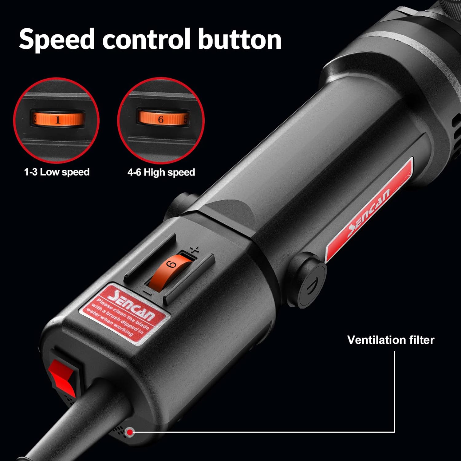 - 【ADJUSTABLE SPEEDS CONTROL】: SENCAN Sheep Shears electric Machine is speed adjustable. Low speed (1-3) offers precision performance to clip-sensitive areas while high speed (4-6) delivers maximum power for faster trims and full-body shaves down. Whether you're a beginner or a pro, the 6-speed control helps you get things done quickly and easily.