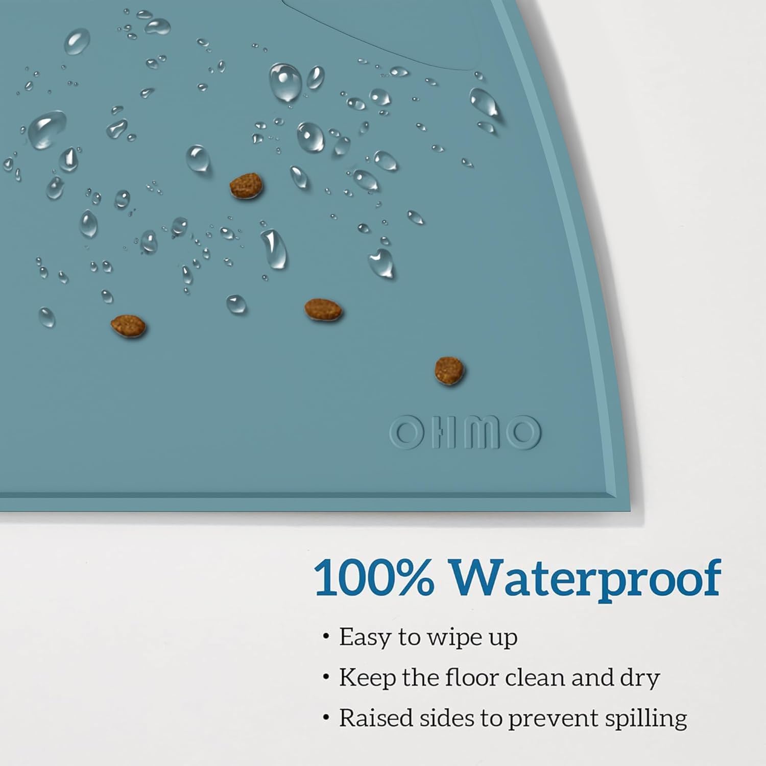 OHMO - Cat Food Mat, Silicone Pet Feeding Mat for Floor Non-Skid Waterproof Dog Water Bowl Tray, Easy to Clean Pet Placemat