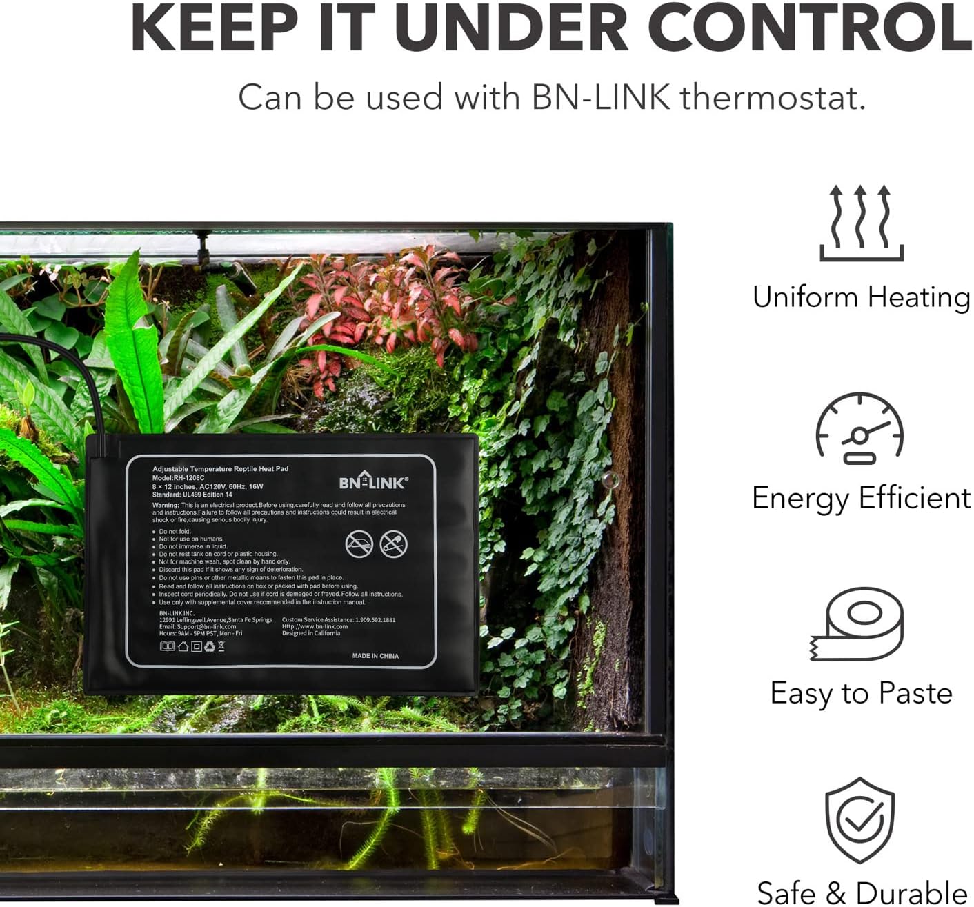 - GREAT UTILITY: The BN-LINK Heating Pad for Reptiles is great for keeping your reptile tank warm, but never scorched. Itβs also great for amphibian, small animal, or plant terrariums.