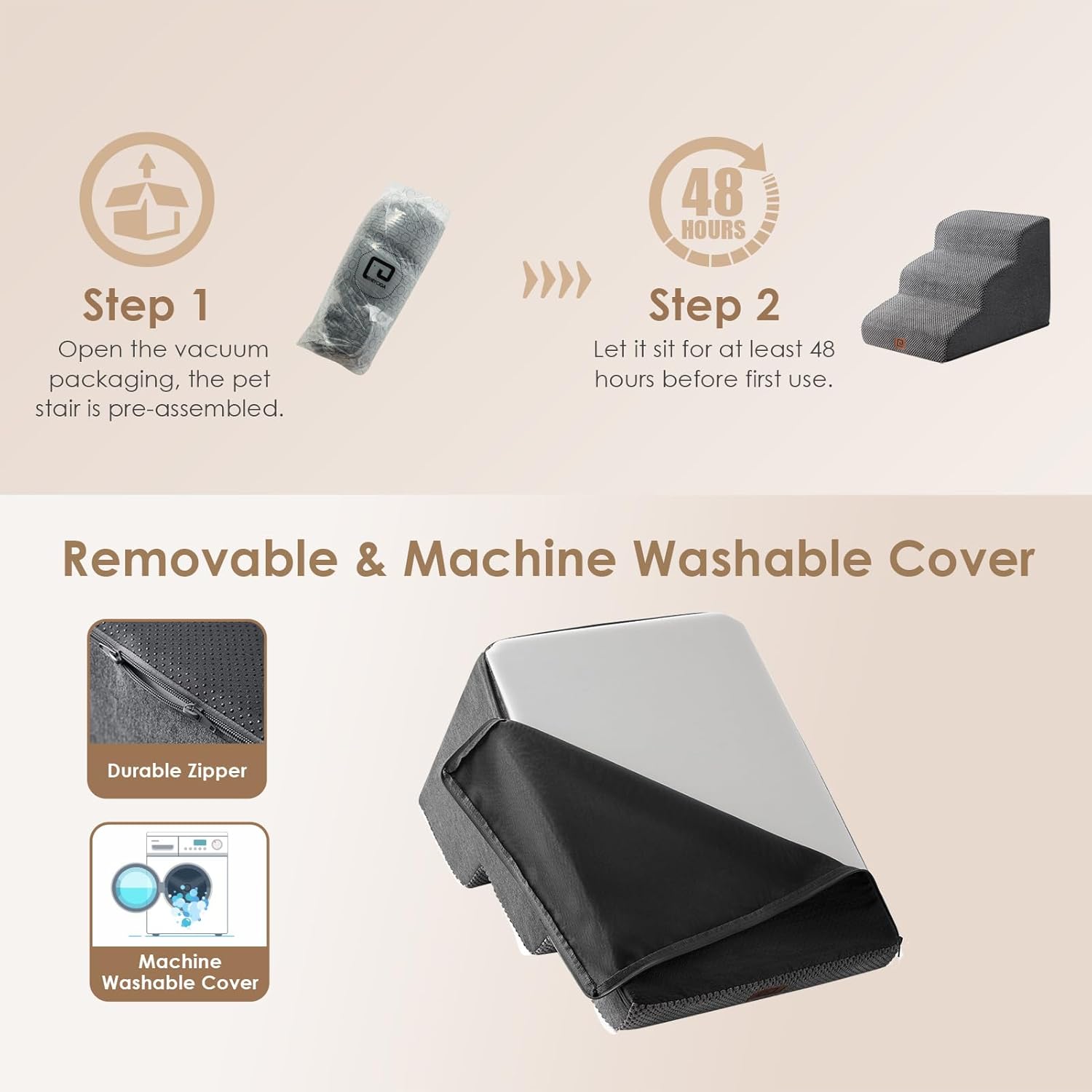- SPECIFIC AND STEADY DESIGN - 33D density of pure foam make this stair more steady when your pets walk on. The dog bed stairs can provide strong support for pets in the walking process. Low angle slope design can better protect your pet's joints.