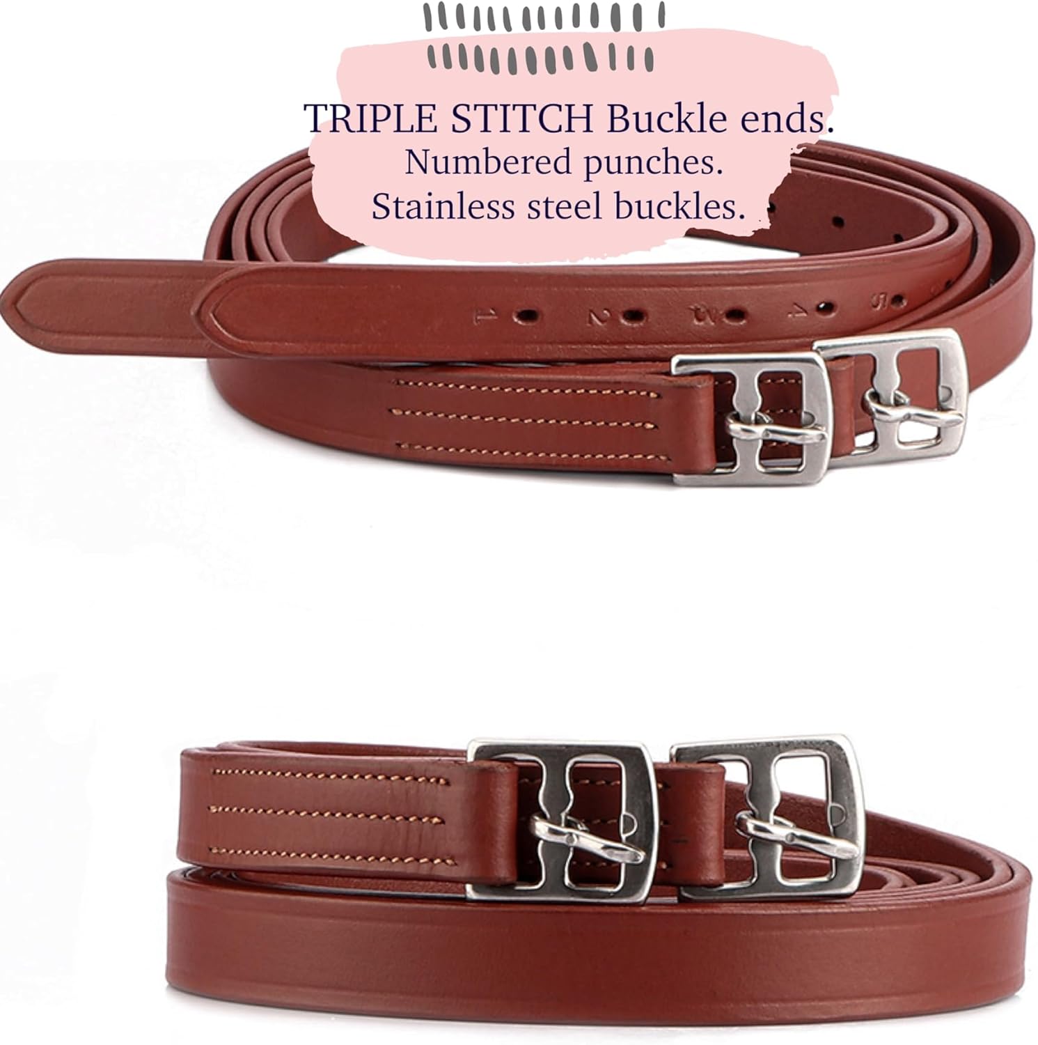 SIE 46”/ 48” / 54” / 56" / 60” English Premium Leather Stirrup Leathers Kids/Adult