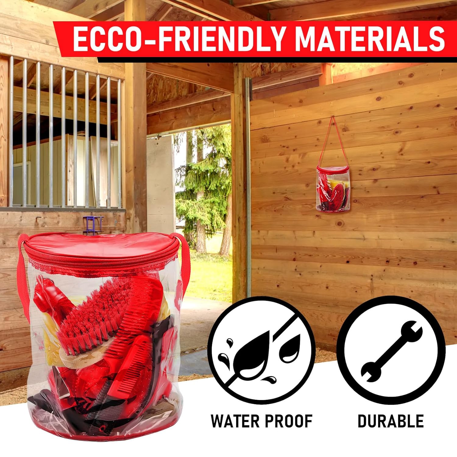 - Product Information: the horse grooming kit, includes a horse grooming tote bag, an oval massage curry, a hard brush, a soft brush, a sweat scraper, bathing sponge, a hoof pick with brush, a mane comb and a tail comb, a total of 9 pieces