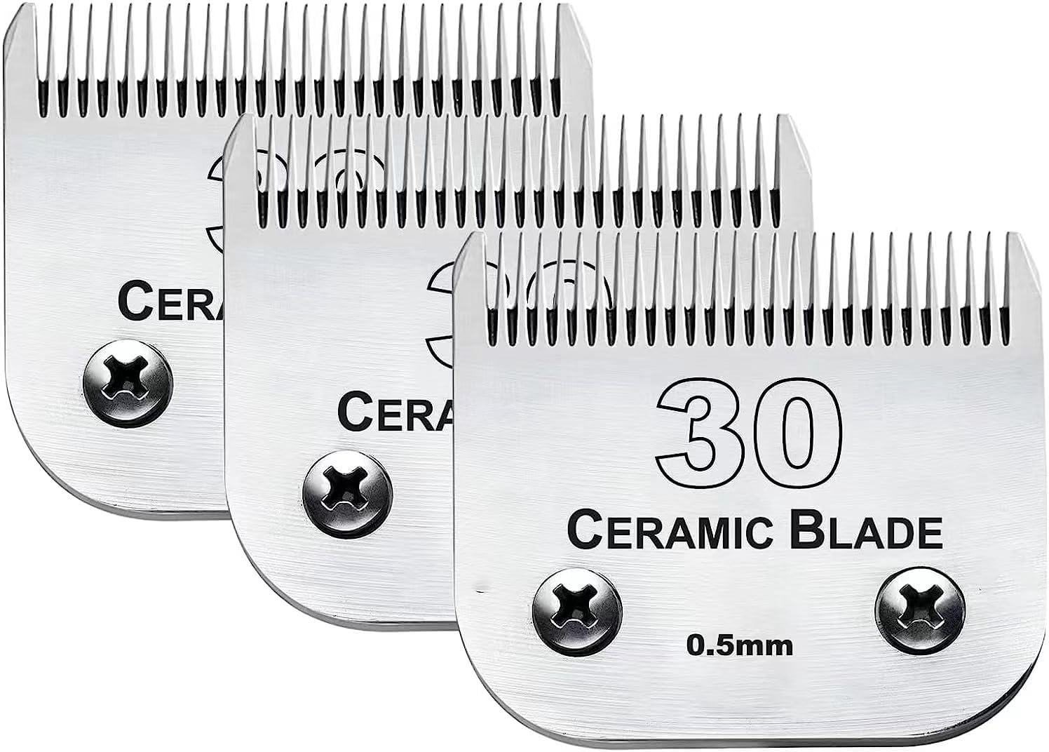 3PCS 30 Blades Dog Grooming Clipper Blades Compatible with Andis Pet Clipper/Oster A5/Wahl KM Series Dog Clipper,Ceramic Blade & Stainless Steel Blade