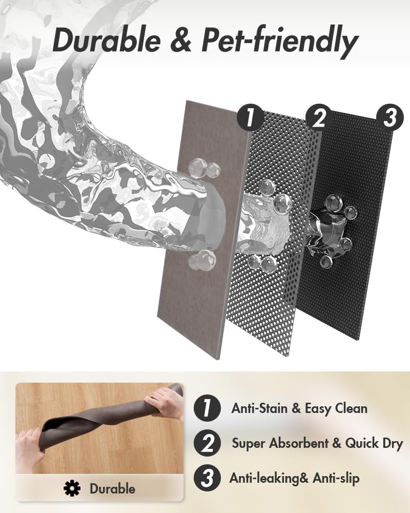 - Super Absorbent & No Stains: Special absorbent surface hide any messy stains completely.β Magic pet food mat catch every drip off pets' chin around the pet water or food bowl. Prevent Say goodbye to spread stains and messy feeding area.