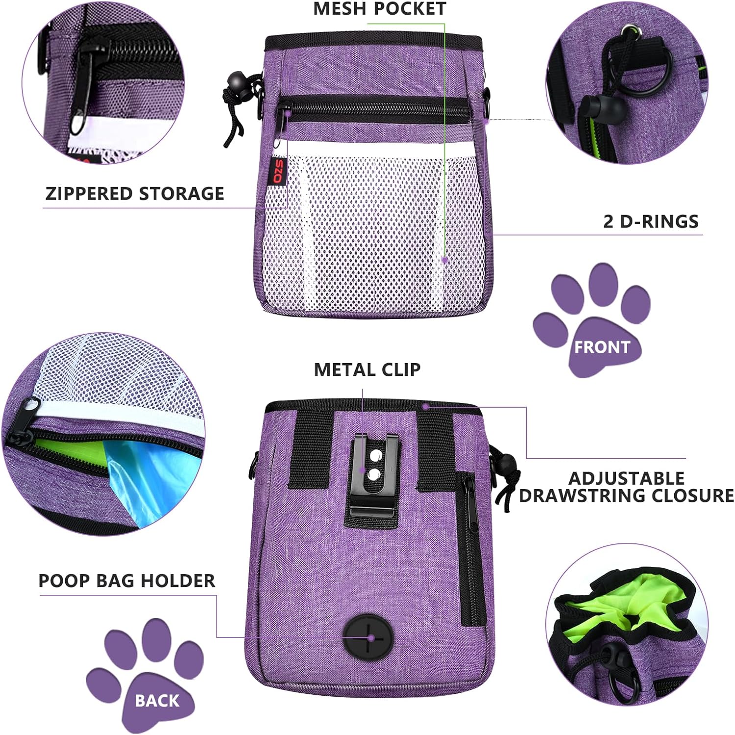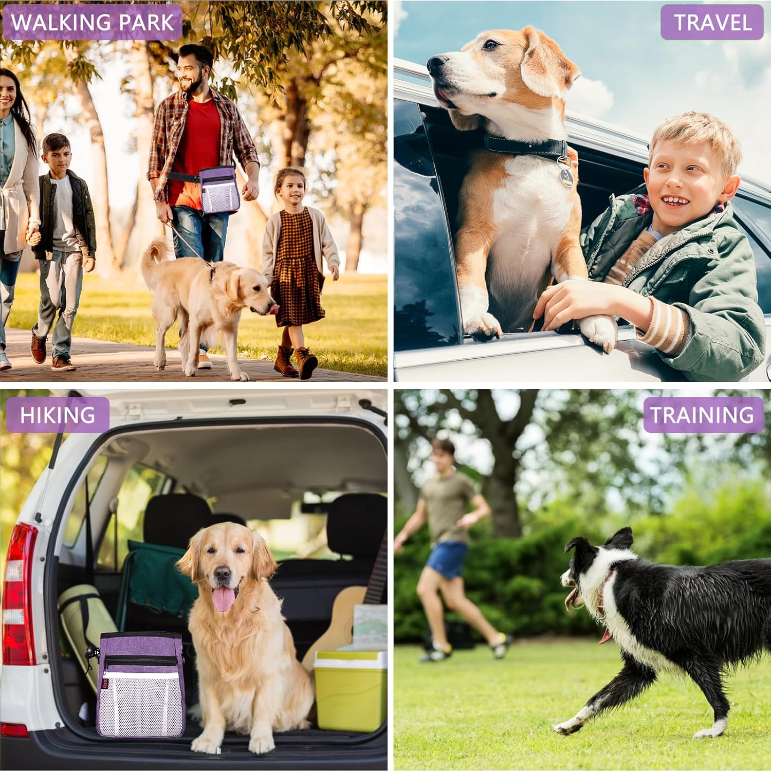 Dog Treat Pouch - 3 Ways to Wear Treat Pouches for Pet Training and 2 Pieces Clicker Taining for Dogs, Dog Training Treat Pouch Bag and Dog Clicker for Training with Waist Belt Shoulder Strap - Purple